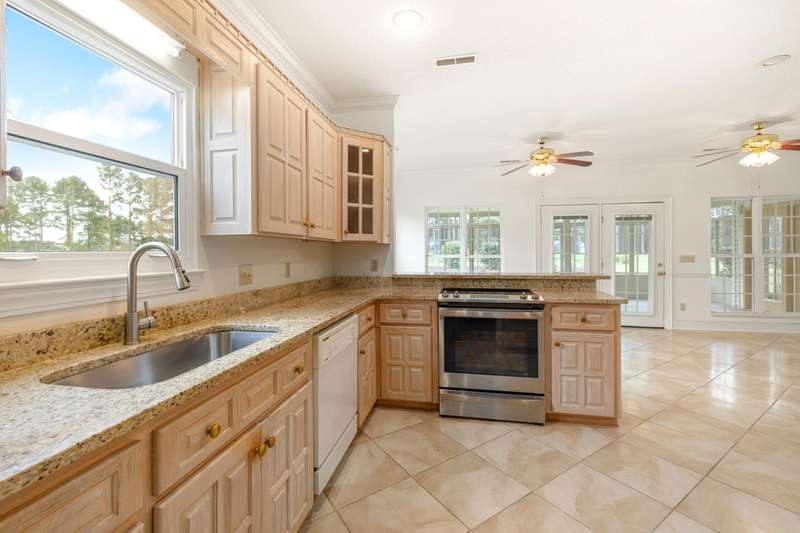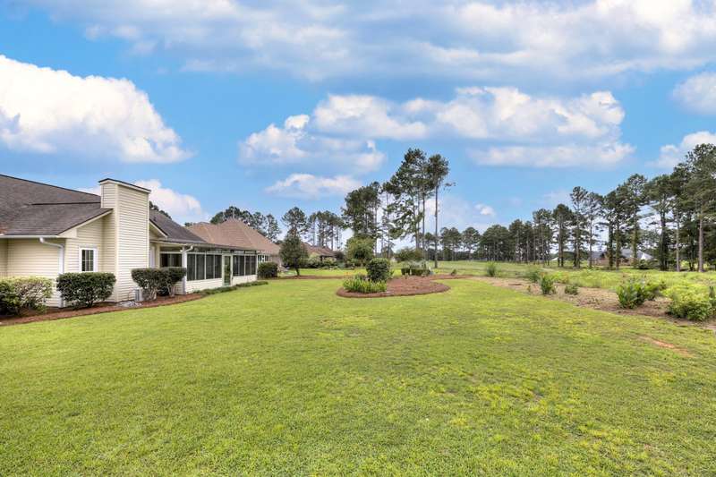 Gorgeous custom-built home on the #12 fairway of The Players Course in the scenic gated, waterside community of Wyboo Plantation. Situated on a beautifully landscaped half-acre lot, this home has plenty of curb appeal w/ Lake Marion views just across the street. Features for this 3BR/2BA home include: abundant sunlight through the new windows installed in 2022; 2023 & 2021 HVAC units; an oversized kitchen w/ pull out shelving, newer SS range/refrigerator, granite countertops & dual pantries; eat-in kitchen space w/ additional sitting area; dedicated DR w/ tray ceiling; LR w/ cozy gas log FP; freshly painted walls throughout; large temp controlled sunroom w/ LVP flooring & lovely golf course views; spacious 2-car garage w/ storage above; newer rain gutters w/ leaf guards & so much more. Whether you're teeing off from your backyard, enjoying nearby lake activities, savoring the tranquility of this property, or appreciating the amenities offered by the community, you'll find everything you need to live your best life right here!