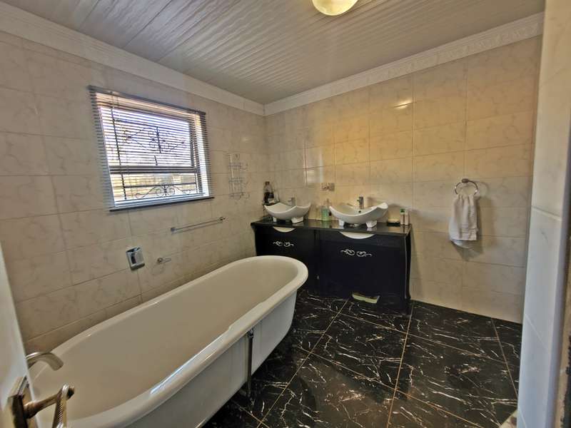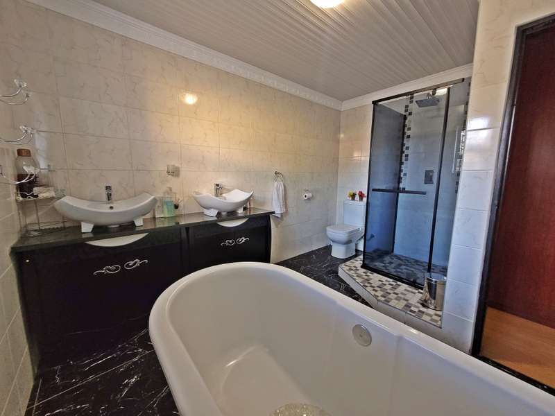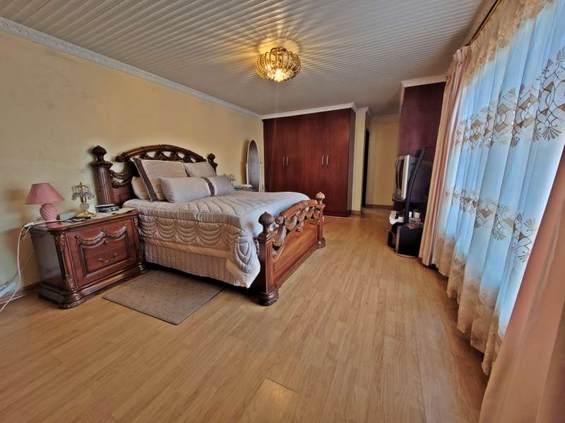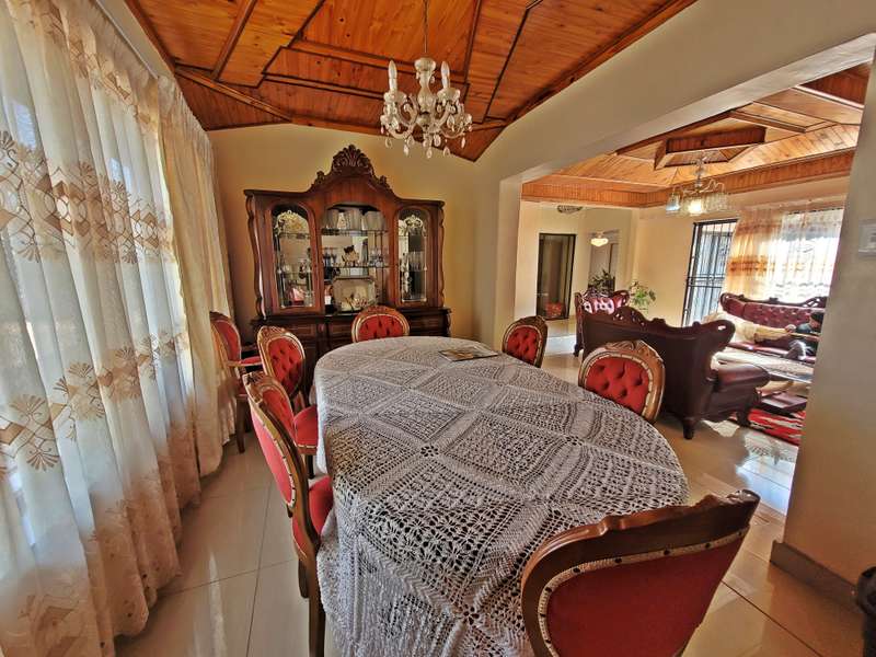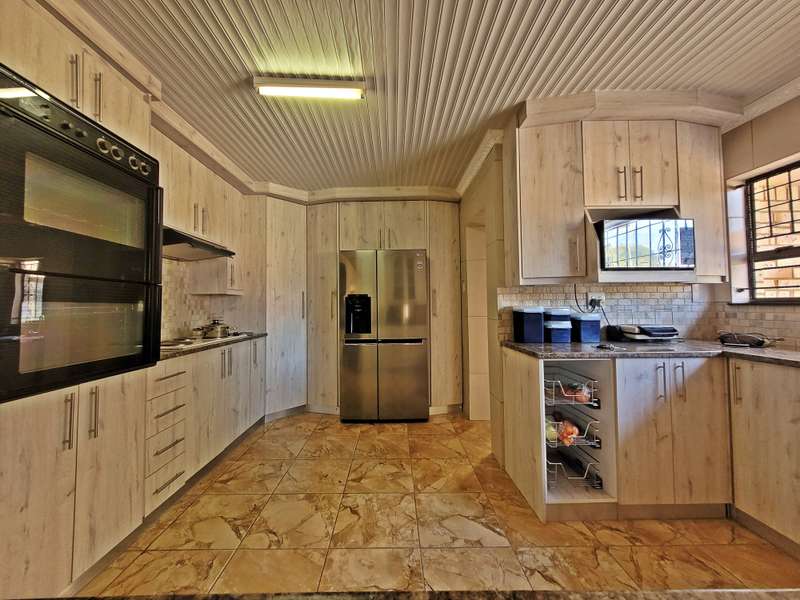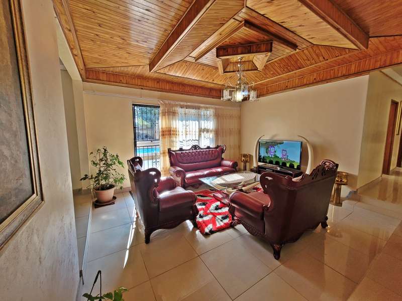 Welcome to this stunning property located in the desirable neighborhood of Pellissier. Situated on a spacious lot, this exceptional home offers a perfect blend of modern luxury and comfortable living. Boasting two entrances, this property offers convenient access from either side. As you approach the residence, you will notice the impressive double garage and double carport, providing ample parking space for multiple vehicles. The beautifully landscaped front yard sets an inviting tone, showcasing the attention to detail and pride of ownership. Upon entering the house, you will be greeted by a sense of elegance and style. The interior features two TV rooms, ideal for entertaining guests or creating separate spaces for relaxation. The lounge area provides a cozy atmosphere, perfect for intimate gatherings or enjoying quiet evenings with family. The dining area, seamlessly connected to the lounge, offers a wonderful setting for formal meals or casual dining experiences. The modern kitchen, complete with a scullery, is a chef's dream, featuring sleek finishes, high-end appliances, and ample storage space for all your culinary needs. This property offers four spacious bedrooms, each designed to provide comfort and privacy. Two of the bedrooms are master suites with en-suite bathrooms, offering a luxurious retreat for the homeowners. An additional bathroom serves the other two bedrooms, ensuring convenience for family members and guests. Moreover, the property includes an outside toilet, catering to outdoor activities and ensuring convenience for visitors. Practicality meets functionality with the inclusion of a laundry room, ensuring that chores are taken care of efficiently. Step outside into the well-manicured backyard, and you'll discover a medium-sized swimming pool, perfect for refreshing dips on warm summer days and creating endless memories with loved ones.