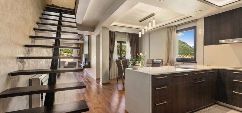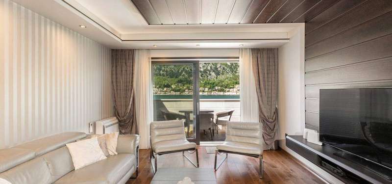 This luxuriously equipped duplex apartment for sale in Kotor is located on the first line to the sea. If you are interested in buying a property in Kotor - modern ambiance, luxurious furniture, and a beautiful view of the bay, this apartment is the perfect choice for you.
