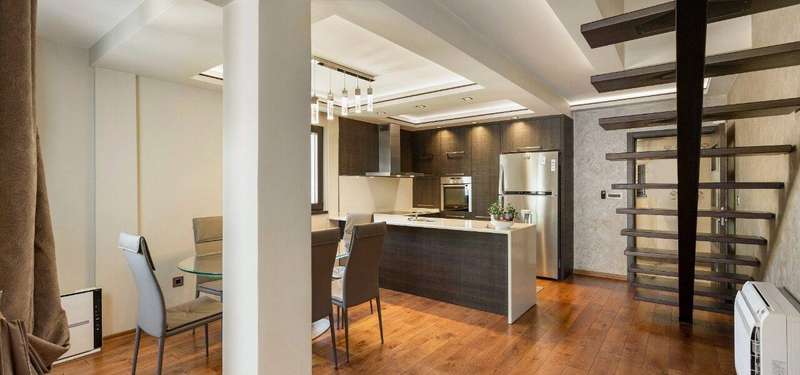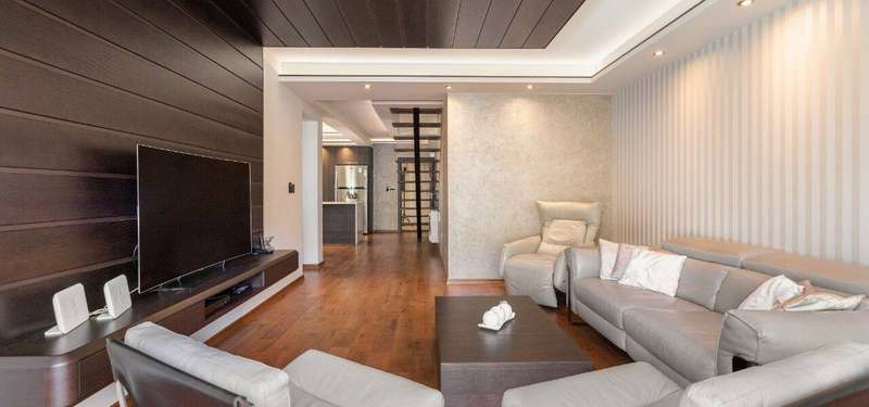 Thanks to the furniture of the Italian brands Natuzzi and Caligaris, oak parquet, wood-aluminum carpentry, modern technology, with which this apartment is equipped, they make this living space perfect for people who choose the best for themselves.