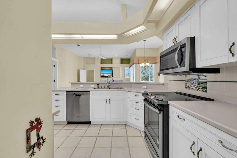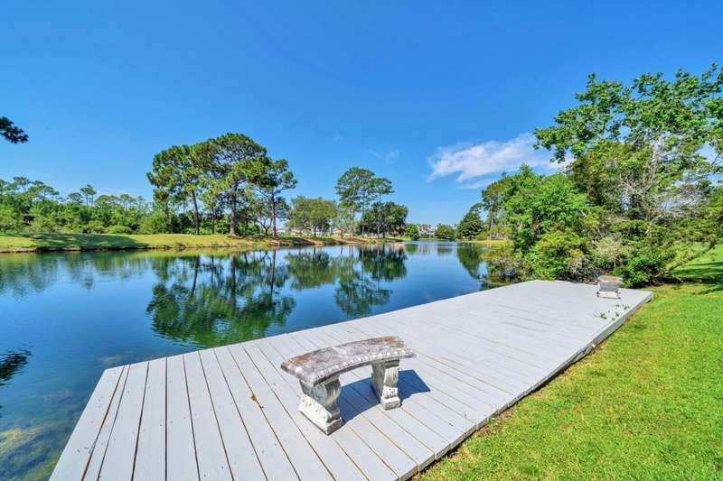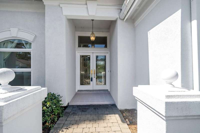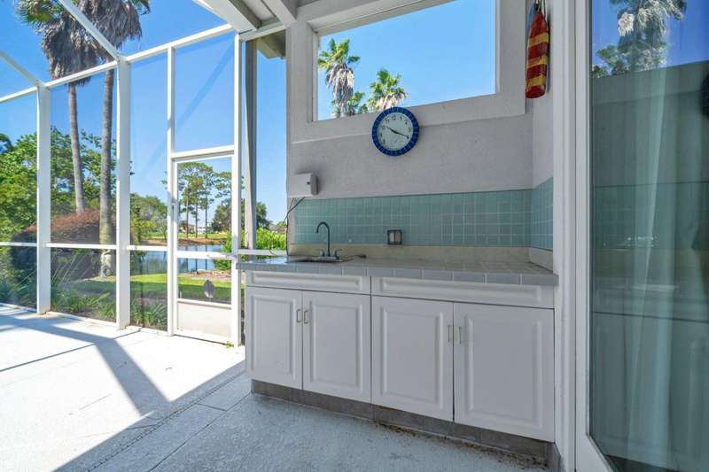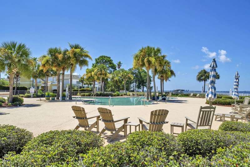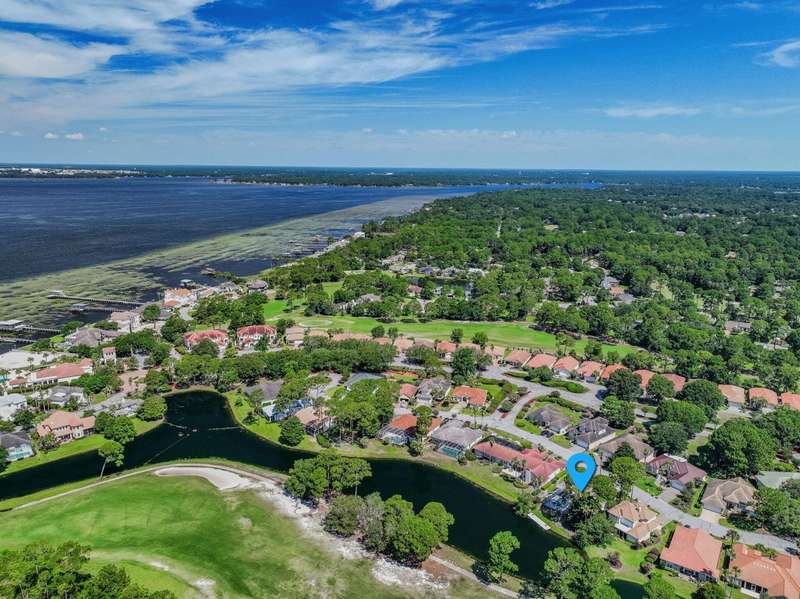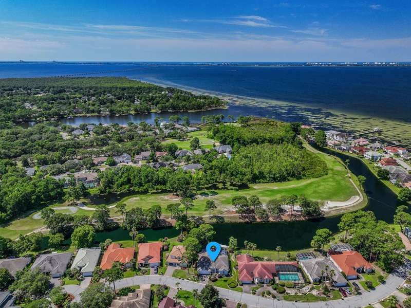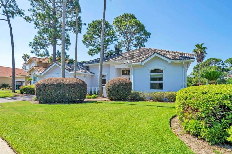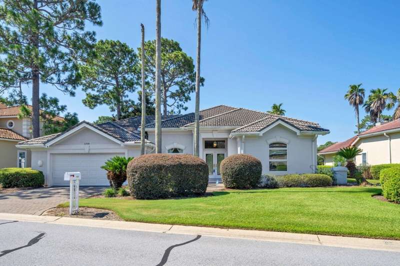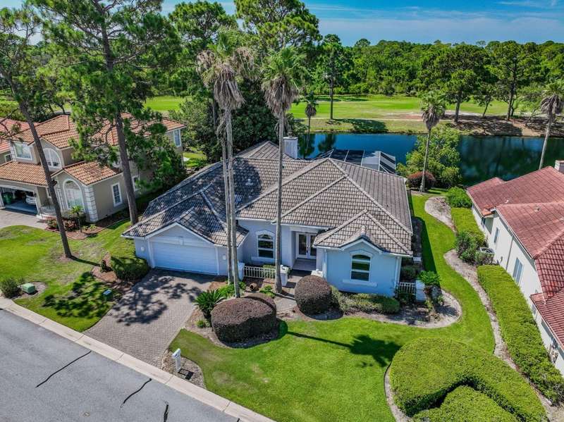 Excellent Location! This waterfront home is located in the beautiful mediterranean style neighborhood of Sunset Beach within the gated Bluewater BayGolf Course Community of Southwind. Situated in one of Niceville's most desirable neighborhoods, this 3-bedroom, 2-bathroom home offers 2,350 square feet of living space on a well-maintained 0.25-acre lot. This lovely home features a screened-in saltwater pool and an elevated hot tub overlooking the pretty lake. The pool is also heated so you can enjoy it year round. Would you rather spend your weekends at the beach instead of mowing the lawn, no problem as lawn maintenance and irrigation are included in your HOA dues! Plus, you will also enjoy access to Sunset Beach's stunning Bayfront pool and clubhouse, great for private gatherings and neighborhood events.The mature landscaping and paver driveway create a welcoming first impression, while the open-concept floor plan allows for comfortable everyday living and entertaining. The home is filled with lots of natural light, creating a bright and inviting atmosphere. Inside, you'll find durable tile flooring throughout the main living areas, a gas fireplace in the living room, and custom built-in shelving. The layout flows easily from the dining room to the kitchen and main living space, making the most of the natural light and water views.With a great layout and prime location, this home presents a unique opportunity to invest in a waterfront property and make it your own. Schedule a showing today to see the potential for yourself.