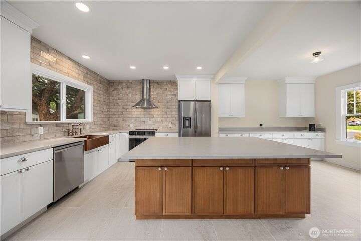Stunning 1936 Tudor just two blocks from Lake Chelan, fully remodeled while preserving its original charm. This 5-bed, 3.25-bath home offers 2,778sq ft of updated living space with hardwood and tile floors. Three bedrooms make up the top floor including a new owners suite fully equipped with a full bath and multiple closets. The finished basement has a separate entrance, full kitchen, and laundry-ideal for rental, guests, or multi-gen living. Every surface has been refreshed, blending 1930s elegance with modern comfort. Enjoy a manicured front yard, detached 1-car garage with carport attached, and proximity to parks, shops, and the lake. A rare mix of vintage character and modern updates-move-in ready. Welcome to Chelan's historic core!