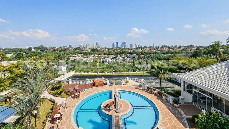 Casa no condomínio TAMBORÉ III, com 1718m² área construída, 4 dormitório(s), 4 suíte(s), 10 vaga(s), 8 banheiro(s), piscina, gerador, escritório, sauna, ar condicionado, dep. de empregados, varanda, pé direito duplo.