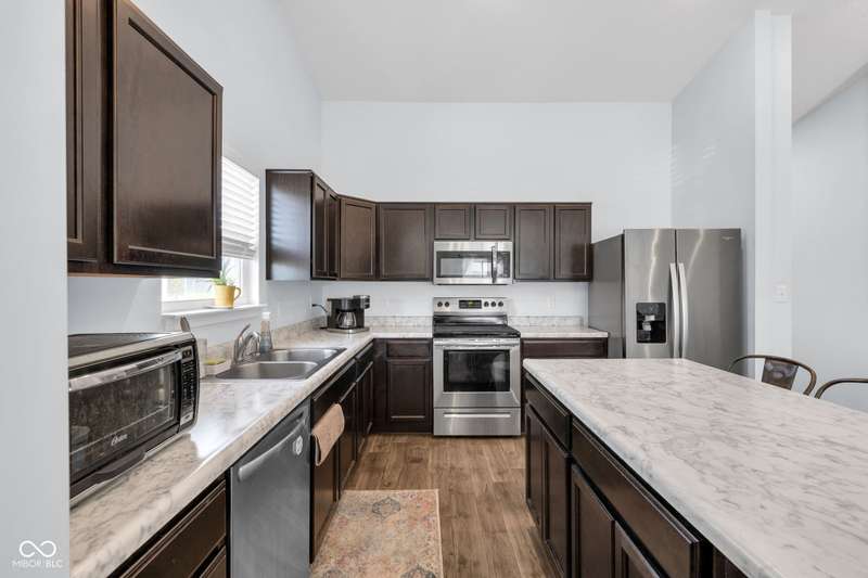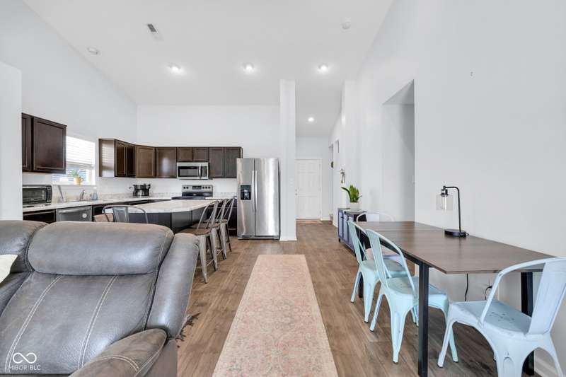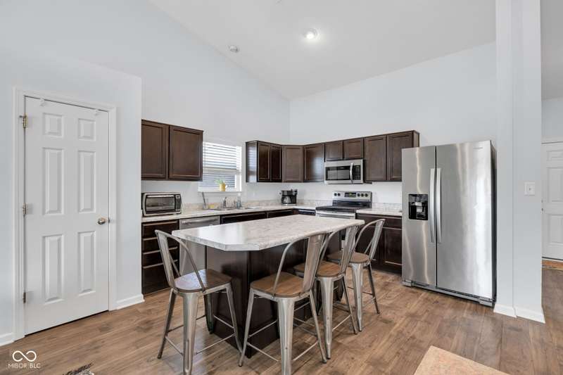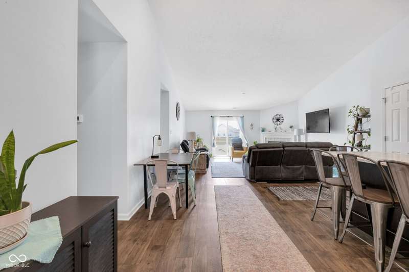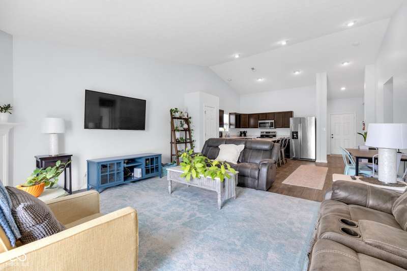 Autumn Woods :: Welcome to this beautifully maintained 2020 home featuring 4 bedrooms, 2 full baths, and a versatile den! Great vaulted ceilings and abundant natural light create an airy, open-concept living space that seamlessly connects the updated kitchen, dining area, and living room. The kitchen boasts a large center island, perfect for entertaining or casual meals. Cozy up by the fireplace or enjoy peaceful views of the pond through the expansive glass sliders. The main-floor primary suite includes a spacious walk-in closet and dual vanities. Two additional bedrooms, a full bath, and laundry are also conveniently located on the main level. Upstairs, you'll find a fourth bedroom or a perfect flex space for a second living room, guest suite, or office.