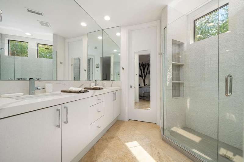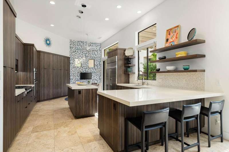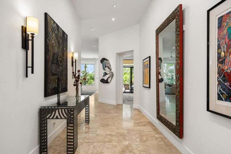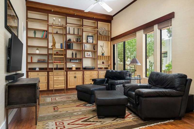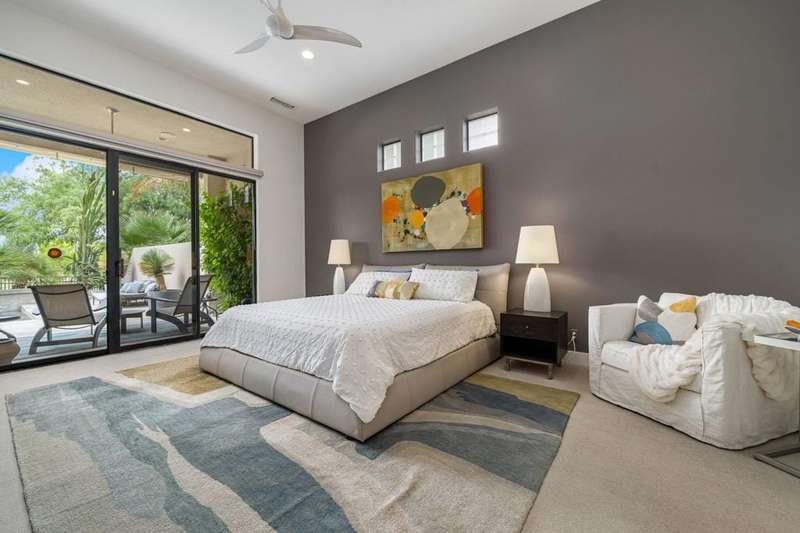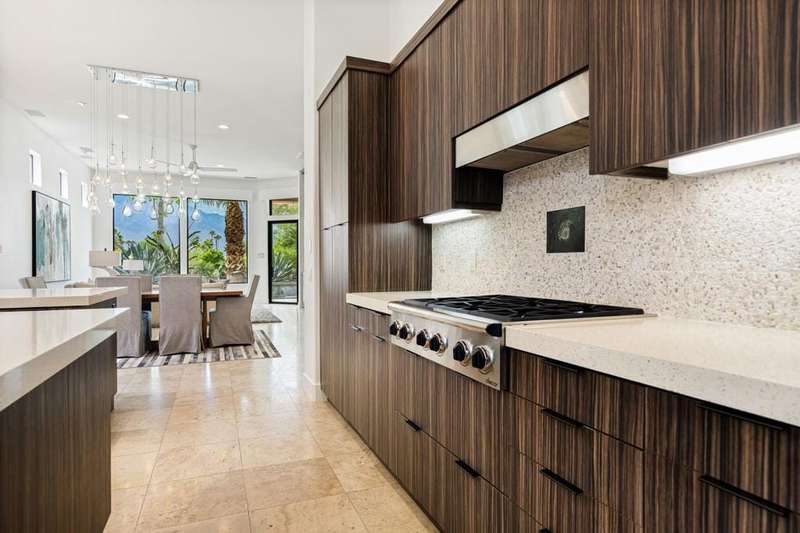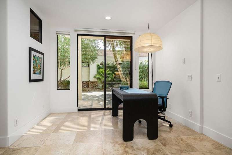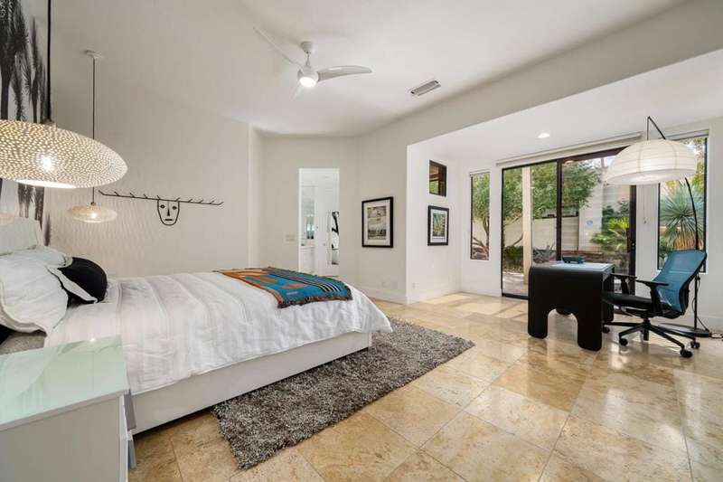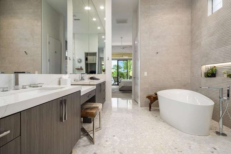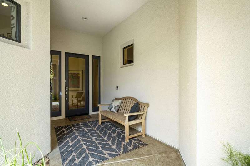 Experience expansive Western Mountain and fairway views from this beautifully updated, move in ready home in the prestigious Stoneridge Estates on the Pete Dye course. Be welcomed by lush landscaping and resort-like ambiance. Inside, the open-concept Great Room, Dining Area, and Gourmet Kitchen are designed for effortless entertaining. The Great Room showcases elegant travertine flooring, a custom-built-in entertainment center with fireplace and panoramic San Jacinto view. Chef's Kitchen has Sub-Zero, Dacor cooktop, quartz countertops, loads of storage and spacious eat-in area. Kitchen and dining areas open to patio with lounge area including fire pit, dining area, 2 built-in grills, and misters. Primary Suite offers stunning mountain views and completely remodeled, spa like bath with walk-in shower, soaking tub, and custom walk-in closet. Expanded Guest Suite features a custom mural and office/sitting area. Third bedroom--currently a den/office--boasts floor-to-ceiling built-in shelving and ensuite bath. Bonus room by laundry is ideal as home gym or office. Saltwater pool/spa and shaded living space overlook fairways and mountains, Owned solar with back up battery. Fee land with low HOA includes social/fitness membership to Mission Hills Country Club.