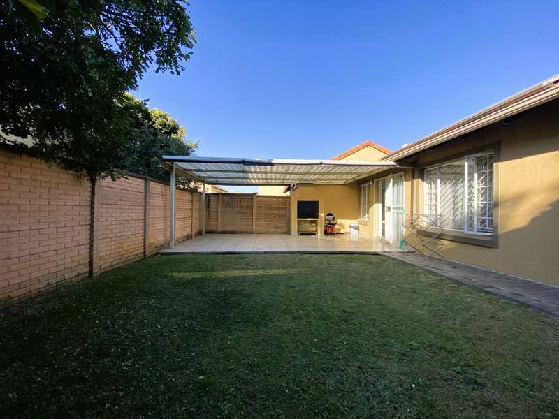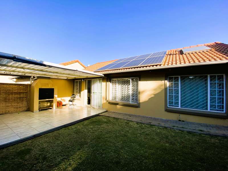 On Show By Appointment // Kindly contact agent to arrange a viewing time This beautifully maintained, modern simplex offers comfortable and convenient living in a sought-after, secure complex. • 2 Spacious Bedrooms with built-in cupboards; main bedroom includes air conditioning • 2 Bathrooms: MES with shower, basin, and toilet. 2nd bathroom with bath, basin, and toilet • Open-Plan Living Areas: Seamless flow between the lounge, dining, kitchen and covered entertainment area. • Well-Appointed Kitchen with ample appliance space, both electric and gas stove options, electric oven, and space for a double-door fridge. • Direct access from the garage to the home; garage includes plumbing for a washing machine. • Double Automated Garage • Private Garden with undercover entertainment area and built-in braai — ideal for relaxed outdoor living. • Energy-Efficient Features: 5kW inverter, battery, 6 solar panels, and solar geyser. • Utilities Metered individually for water and electricity • Visitors Parking available This unit is located in a quiet, well-run complex with easy access to main routes, shopping centres and other amenities.