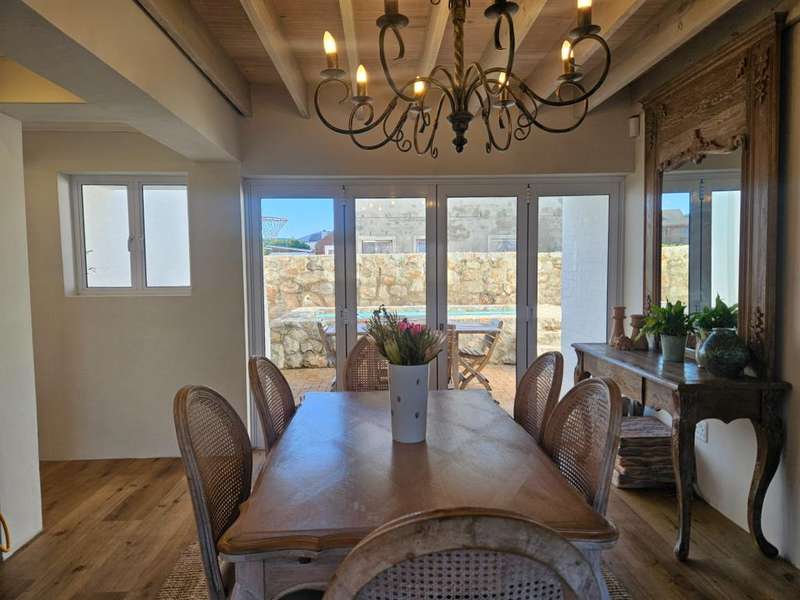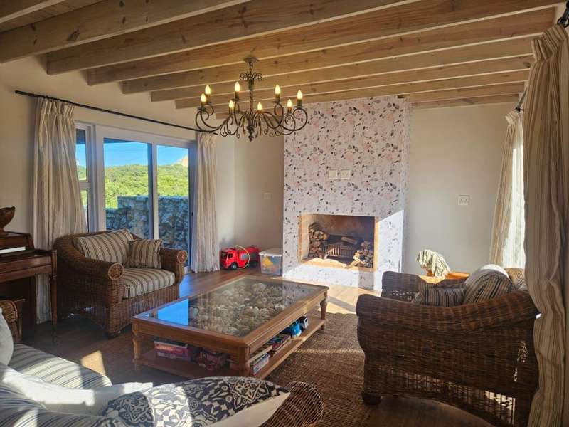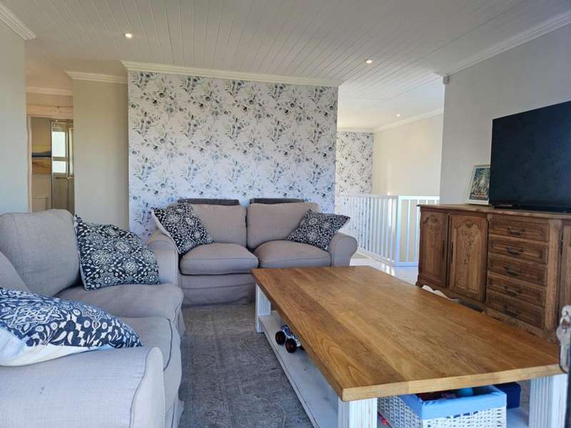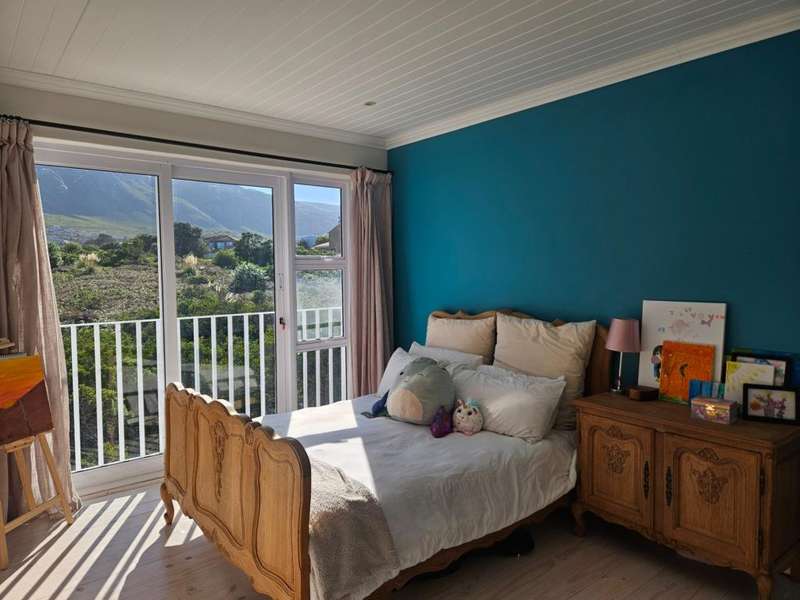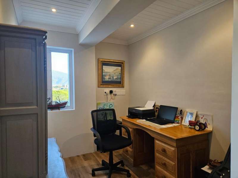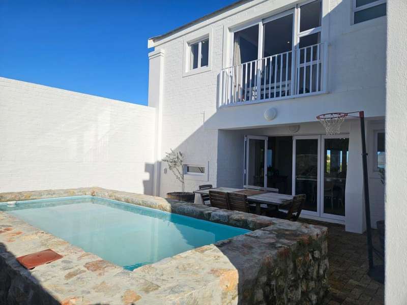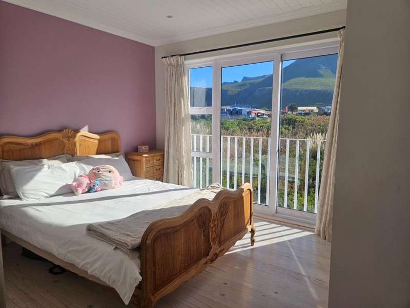 Surrounded by Fynbos, mountain and sea views. This coastal style home you can find on the end of beach road. This is the last house on the road. Quiet with only the sound of the sea and birds. Lovely entrance to the house with doors from both sides that leads to 2 garages on each side of the house.?á?áHome office and braai room that opens out on the west covered patio with stunning uninterrupted sea views and on the east side a lovely courtyard with swimming pool. On the other side of the braai room you find the sunny north facing open plan lounge with fireplace, dining area and kitchen with separate scullery/laundry. All with mountain views. Upstairs is a small family TV room that also opens out on the west balcony with breathtaking?ásea views on Kleinmond Harbour and Betty's Bay mountains as the background. 4 Bedrooms with 3 bathrooms. 3 Of the 4 bedrooms are north facing and the main bedroom also opens out on the west balcony. Don't miss this ready to move in gem.