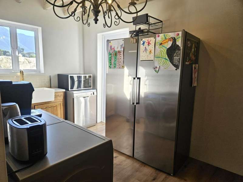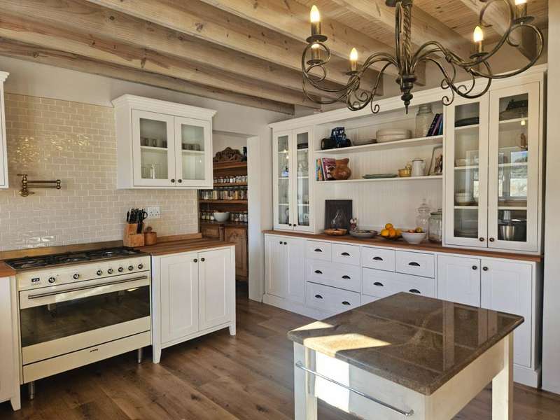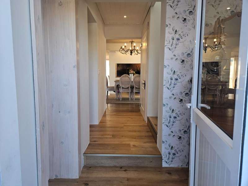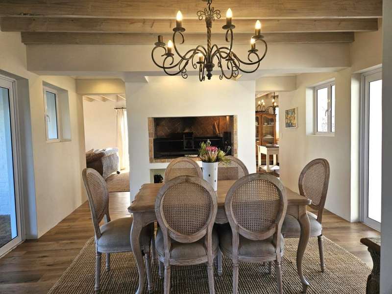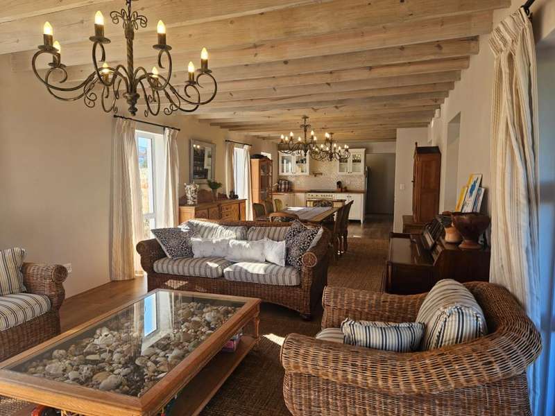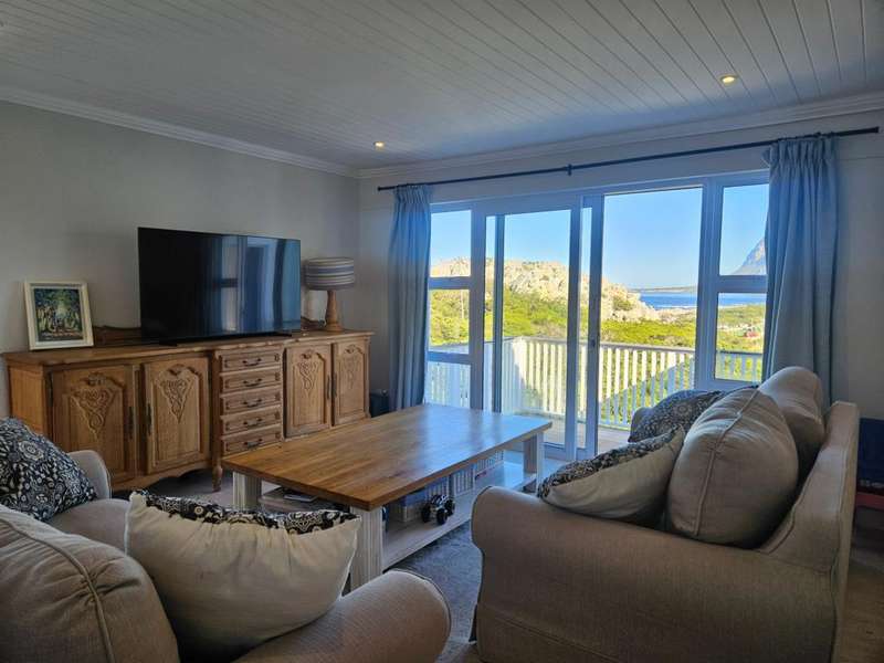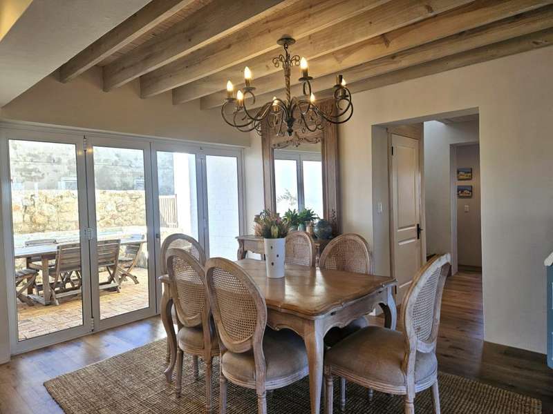 Surrounded by Fynbos, mountain and sea views. This coastal style home you can find on the end of beach road. This is the last house on the road. Quiet with only the sound of the sea and birds. Lovely entrance to the house with doors from both sides that leads to 2 garages on each side of the house.?á?áHome office and braai room that opens out on the west covered patio with stunning uninterrupted sea views and on the east side a lovely courtyard with swimming pool. On the other side of the braai room you find the sunny north facing open plan lounge with fireplace, dining area and kitchen with separate scullery/laundry. All with mountain views. Upstairs is a small family TV room that also opens out on the west balcony with breathtaking?ásea views on Kleinmond Harbour and Betty's Bay mountains as the background. 4 Bedrooms with 3 bathrooms. 3 Of the 4 bedrooms are north facing and the main bedroom also opens out on the west balcony. Don't miss this ready to move in gem.