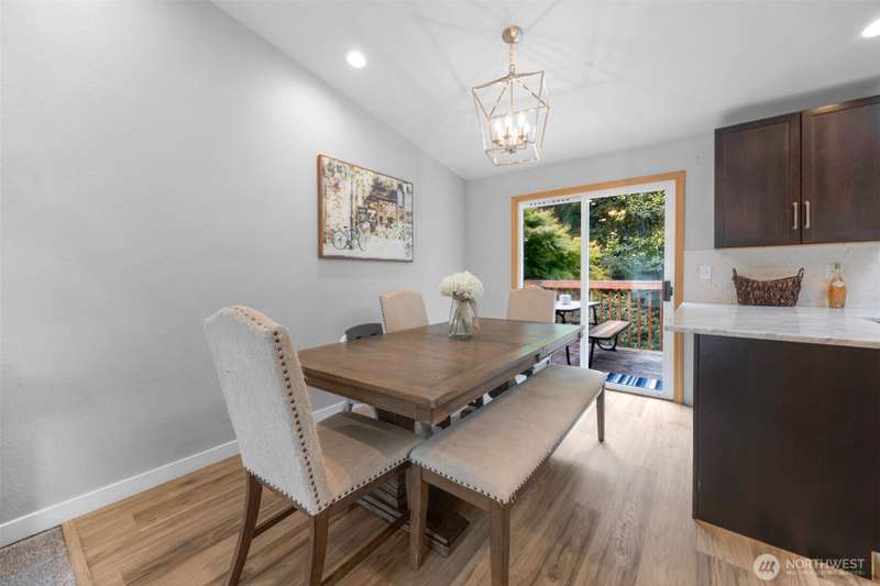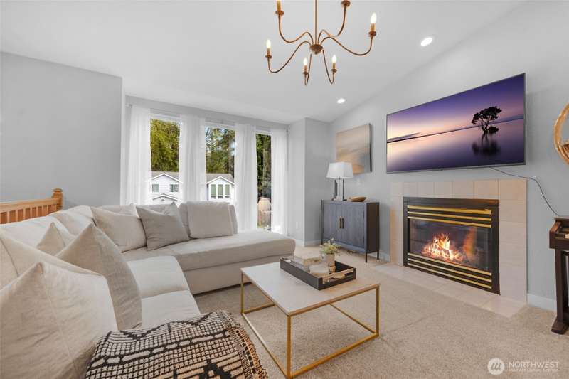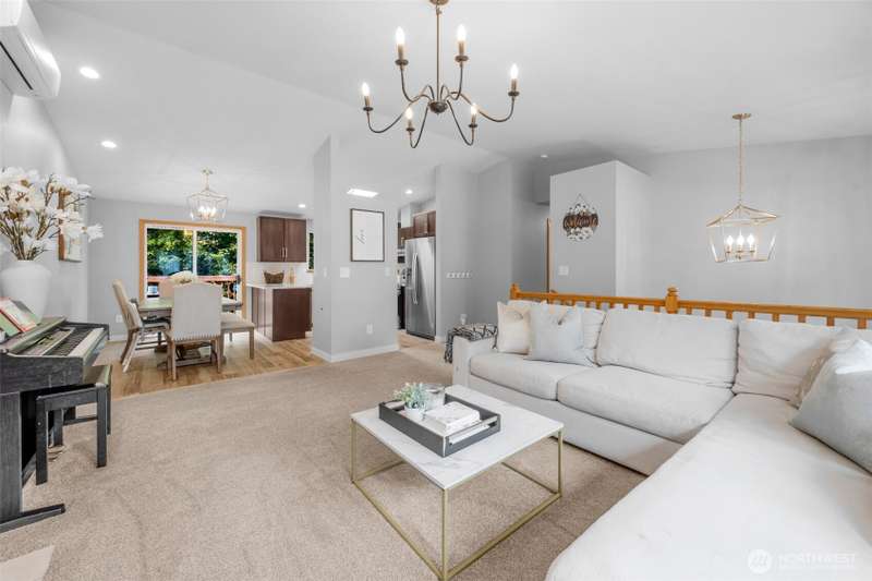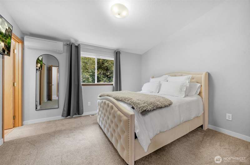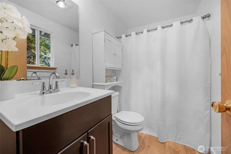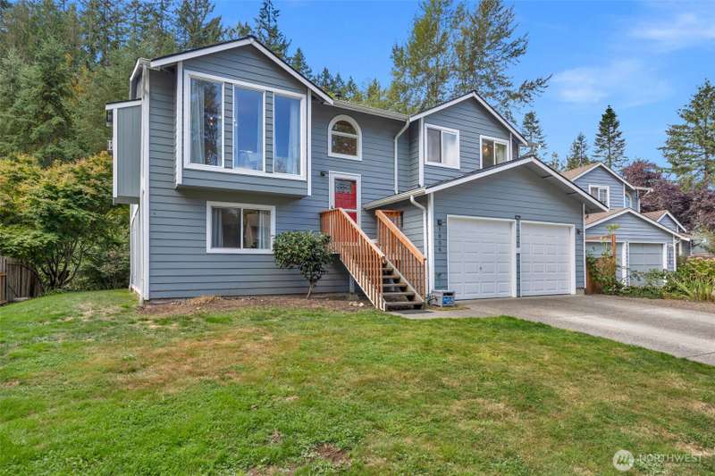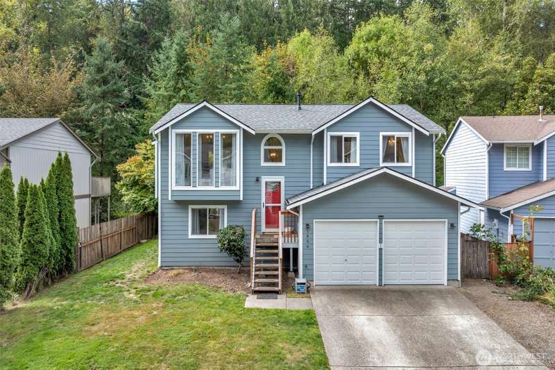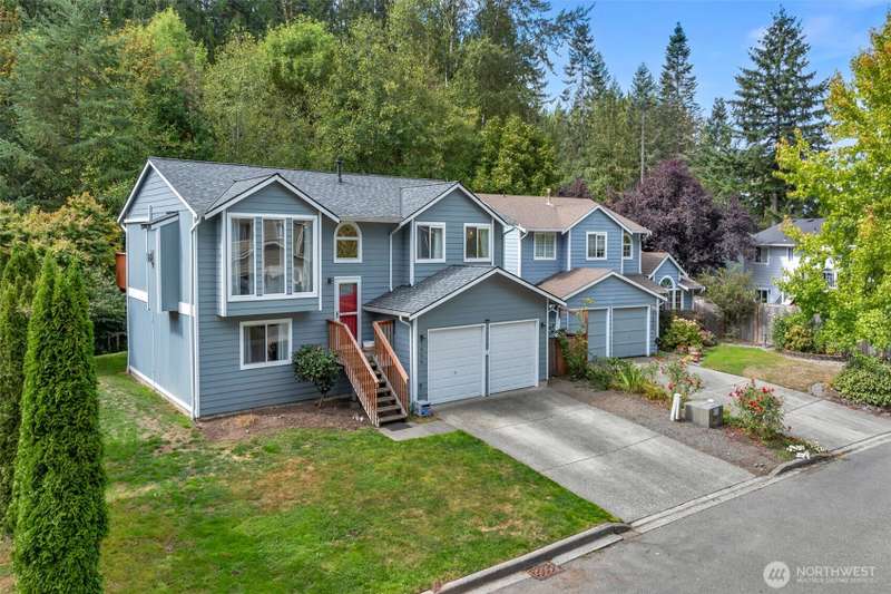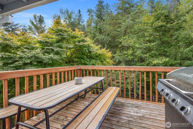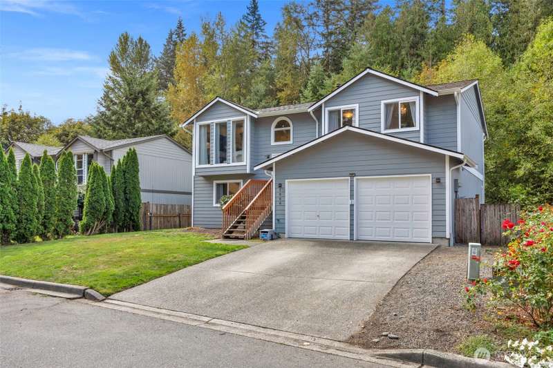 Just steps from the Centennial Trail, Frisbee Park, Boat launch, The Mill Town Center & the Lake! This private creekside setting has trees as your backdrop. Upper level features an updated kitchen with skylights, newer marble countertops, cabinets & newer appliances. The great room has vaulted ceilings with floor-to-ceiling windows & a gas fireplace. Large primary suite, 2 full baths & 2 additional bedrooms up stairs. Lower level lives large! 2nd primary/bedroom with sitting area has ADU potential. A nice size bonus room leading out back & 3/4 bath. 3 living areas! Newer roof, carpet & fixtures—move-in ready! Located in a cul de sac. Large terraced yard backing to NGPA & the creek. You can't beat the location! New mini splits for AC & heat!