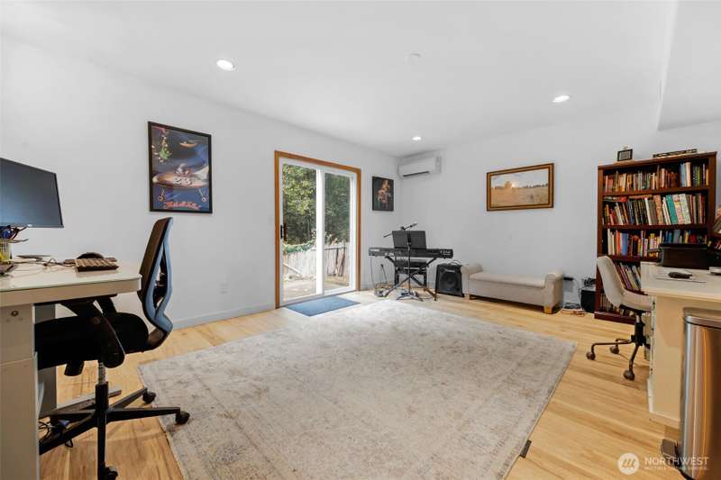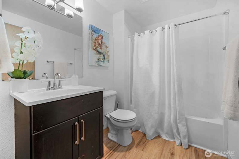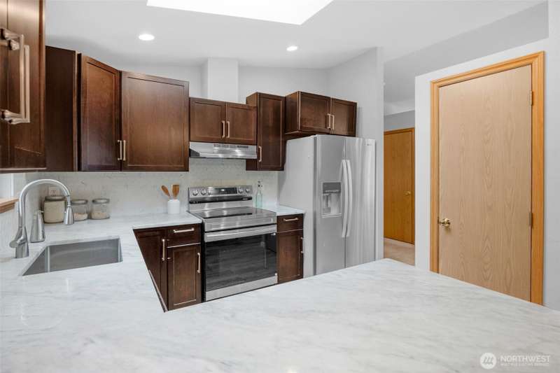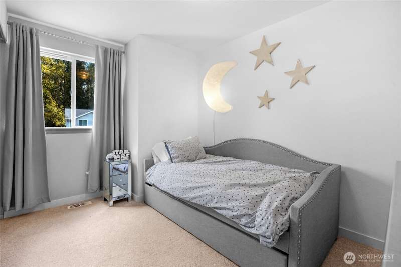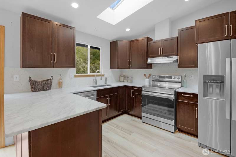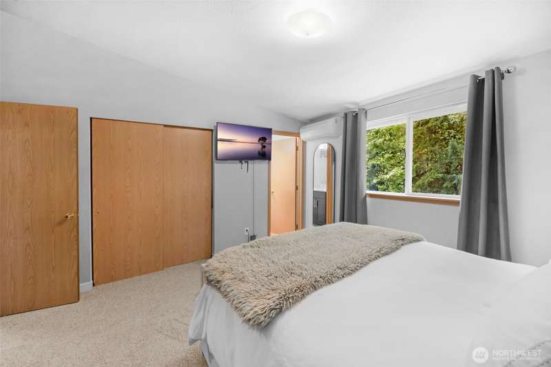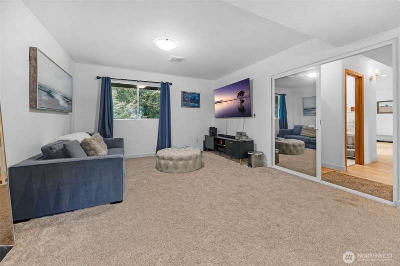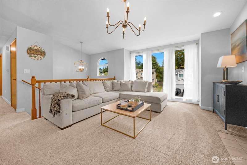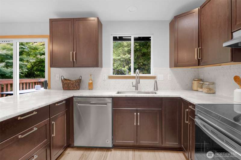 Just steps from the Centennial Trail, Frisbee Park, Boat launch, The Mill Town Center & the Lake! This private creekside setting has trees as your backdrop. Upper level features an updated kitchen with skylights, newer marble countertops, cabinets & newer appliances. The great room has vaulted ceilings with floor-to-ceiling windows & a gas fireplace. Large primary suite, 2 full baths & 2 additional bedrooms up stairs. Lower level lives large! 2nd primary/bedroom with sitting area has ADU potential. A nice size bonus room leading out back & 3/4 bath. 3 living areas! Newer roof, carpet & fixtures—move-in ready! Located in a cul de sac. Large terraced yard backing to NGPA & the creek. You can't beat the location! New mini splits for AC & heat!