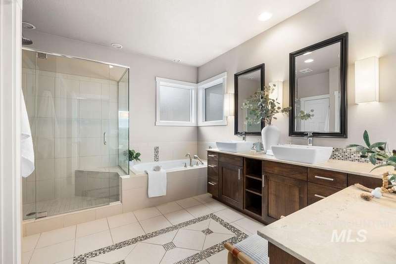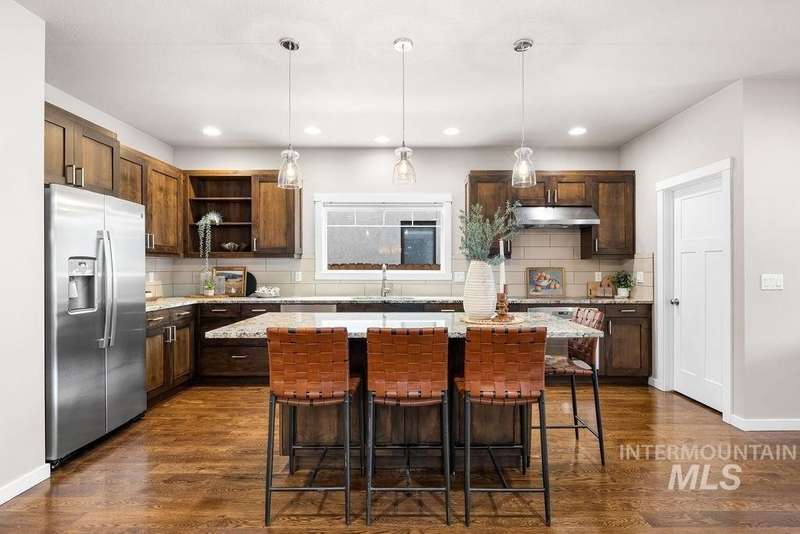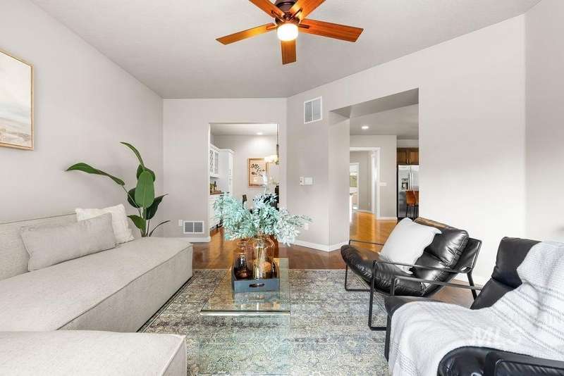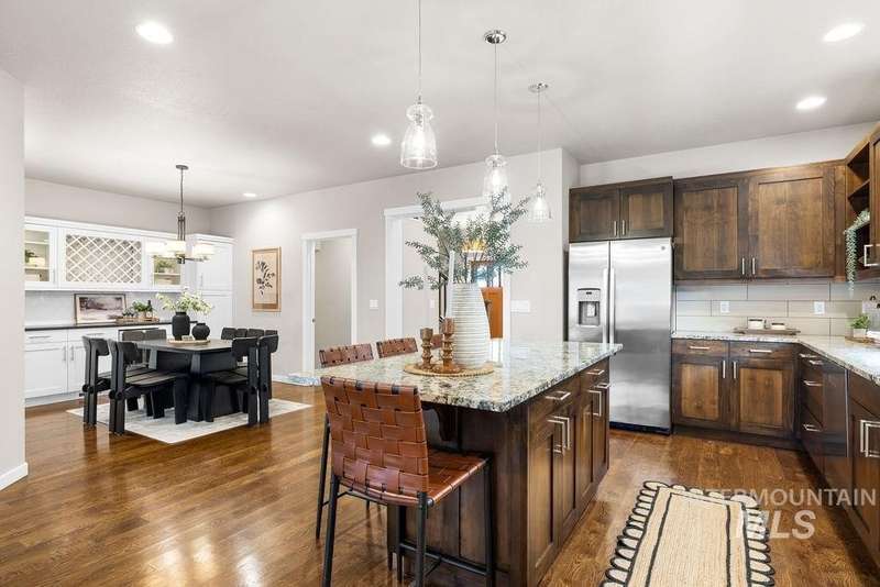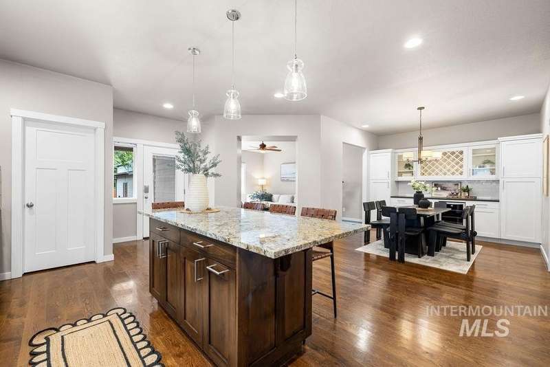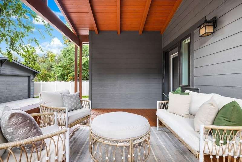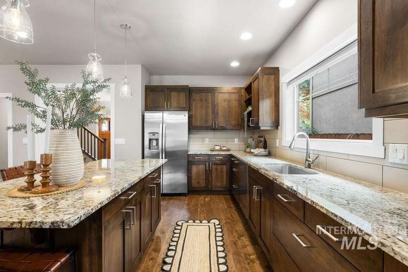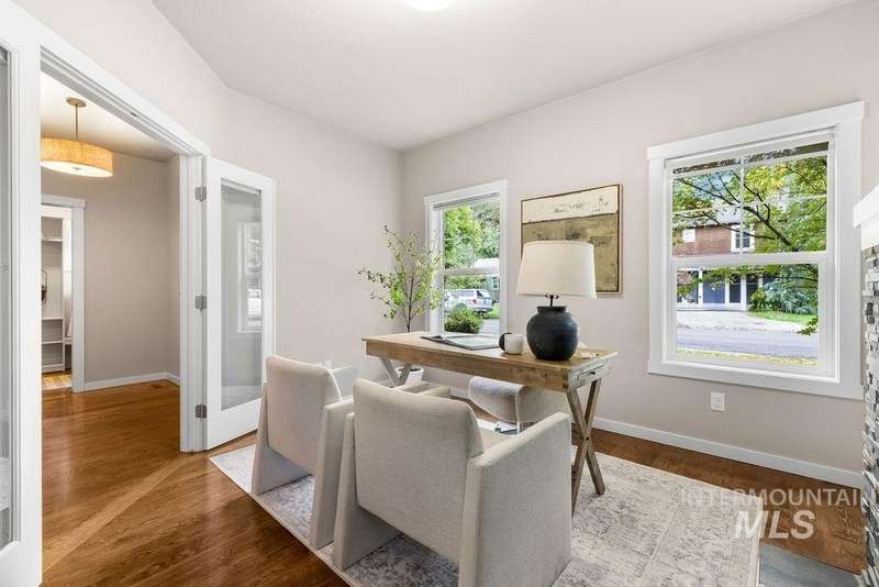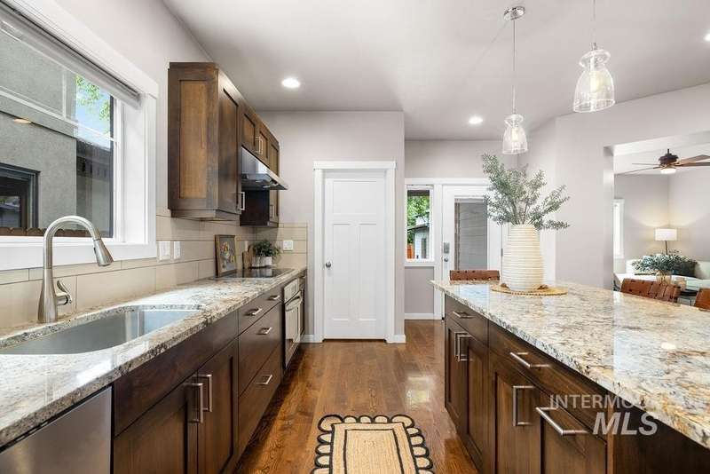 Like new North End home just steps to Elm Grove Park! Nestled on a tree-lined street in one of Boise’s most coveted historic neighborhoods, this thoughtfully expanded residence is ideal for family living and entertaining. Features include an open layout with hardwood floors, beautiful chef’s kitchen with expansive granite island that flows to a covered patio and a charming dining room complete with built-ins and wine fridge. Main level includes a bright family room and home office with cozy fireplace. Upstairs offers a convenient laundry room, a private primary bedroom with luxurious ensuite- heated floors, soaker tub, dual vanities and walk-in closet, plus 3 additional bedrooms, one in a private wing with ensuite bath and homework station. Finished basement provides flex/play space, or a 5th bedroom. Enjoy a covered front porch, large fenced backyard with extended patio, and a rare attached finished shop/garage plus a detached 2-car garage! Truly one of a kind and No HOA!