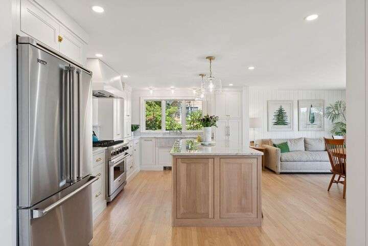 Set on the edge of Broad Cove with 100 feet of ocean frontage, this newly remodeled home delivers coastal living with clean, modern updates. Every room pulls the ocean in, framing the water views through expansive windows, its steady presence a quiet backdrop to daily life. The home's elegant renovation captures the essence of coastal living—light oak floors, a custom kitchen with stone countertops and brass accents, and built-ins that lend warmth and soul. The spaces unfold beautifully from one to the next, each grounded in natural light and ocean views. The open-concept living room, anchored by a sweeping wall of glass, blurs the line between indoors and out, wrapping you in a sense of calm and belonging. Outside, the lifestyle is pure Maine—morning coffee on the patio, afternoons by the pool, and evening gatherings on the deck as the tide comes in. Recent updates—including new siding, a new roof, and windows—bring a fresh sense of ease, letting you simply settle in and enjoy life by the water. Every detail of this Broad Cove home has been curated for beauty, function, and ease of living—a front-row seat to Maine's iconic coastline.