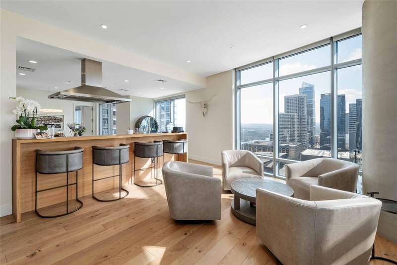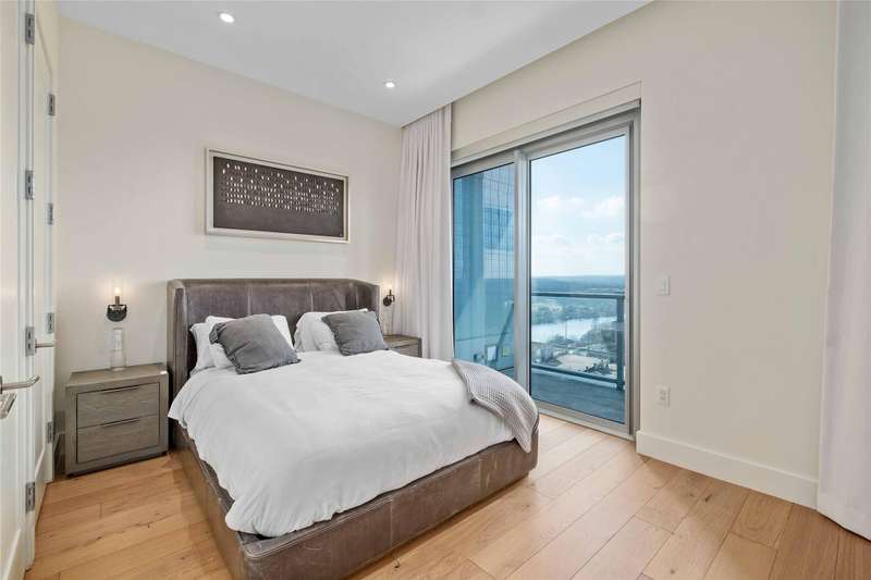 Enjoy views of Congress Avenue, the Frost Tower and State Capitol from this North and West facing 18th floor residence at The Austonian. Beautifully showcased by museum white walls against floor-to-ceiling windows that artfully light up Austin's iconic skyline. Picturesque views of Congress Avenue adorn the North balcony and master suite, while Texas sunsets paint views over Lady Bird Lake from the kitchen, living and dining. An entertainer's dream open plan displays dark Scavolini cabinetry, white stone countertops, and an expansive prepping island. Outfitted with Waterworks fixtures, Wolf appliances, Sub-Zero refrigerator and an oversized wine fridge; the kitchen serves as both a gathering place and a superior prepping space. Take in the city views from both north and west-facing terraces. Two additional bedroom suites complete the south end of the residence with a West facing balcony. The Austonian is the epitome of luxury downtown living, leading the market since its inception in 2008, and constantly challenging the status-quo with its world-class services, amenities, and design. 18AE sits atop this glorious building, presenting you with a backdrop of Austin's famed skyline, including two balconies. Feel on top of the world, and let this extraordinary home welcome you to ultra-luxury living. With Austin's finest restaurants and entertainment within walking distance, this home offers a lifestyle unmatched in downtown Austin. And in addition to the Austonian's world-class services and amenities, 18AE also conveys with three parking spaces and a climate controlled storage unit. Location is supreme - with coveted views and coveted centrality. This dream-home in the sky caters to all your needs, and is an extraordinary opportunity to live in a custom-built dream home.