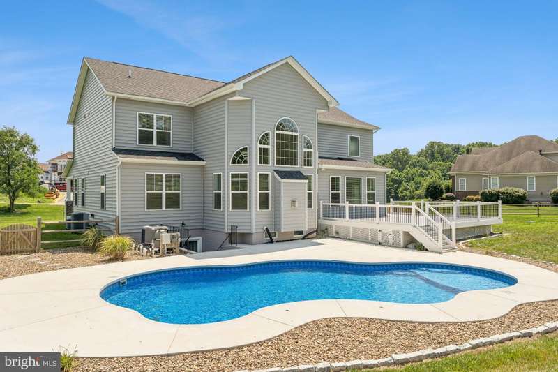 Welcome to this exceptional estate, built in 2021 and nestled on 1.71 fully fenced acres. With over 6,600 sq ft of beautifully finished space, this home combines luxury, comfort, and thoughtful design at every turn. The gourmet kitchen is a true centerpiece, featuring a 5-burner gas cooktop and hood, double wall ovens, walk-in pantry, and an extended island with extra cabinetry. It opens to a stunning great room with coffered ceiling and gas fireplace, perfect for both everyday living and entertaining. Enjoy flexible living with a main-level bedroom and full bath, private office with French doors, and a fully finished walkout basement complete with a wet bar, home theater, rec room and full bath. The extended owners suite offers tray ceilings, double walk-in closets, a separate temperature control system, and a California spa bath with a freestanding soaking tub, dual shower heads, and dual vanities. Outside, unwind on the oversized Trex deck or take a dip in the in-ground poolyour private retreat awaits.This is luxury living designed for real life.