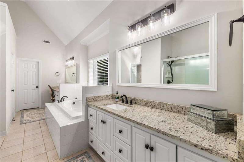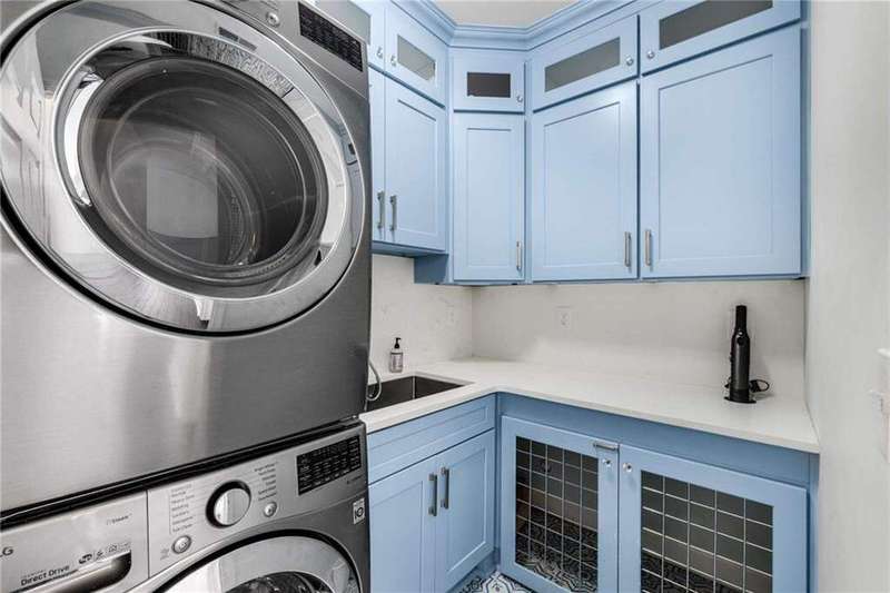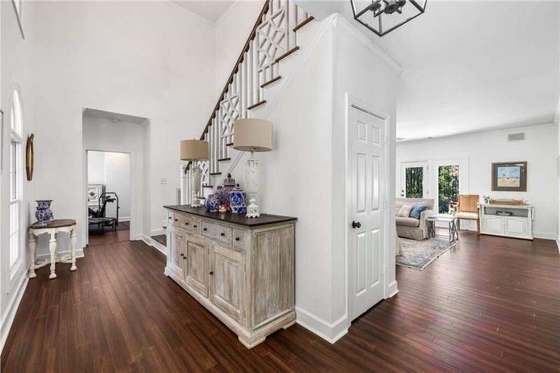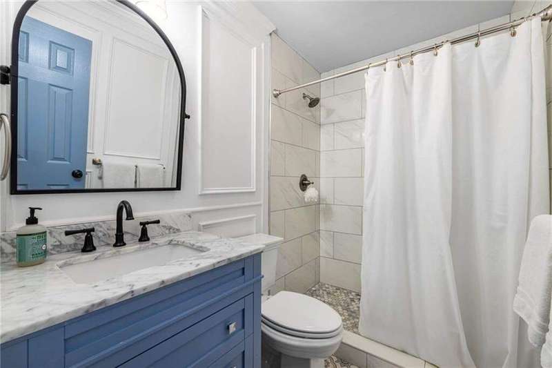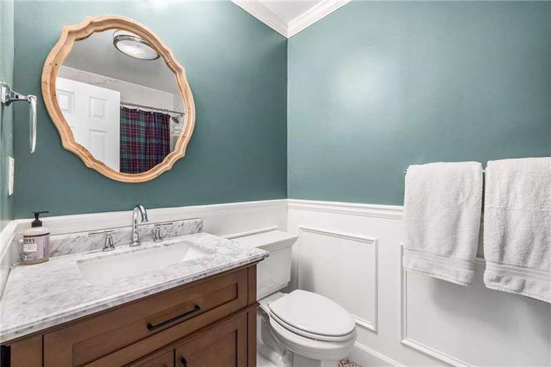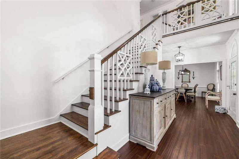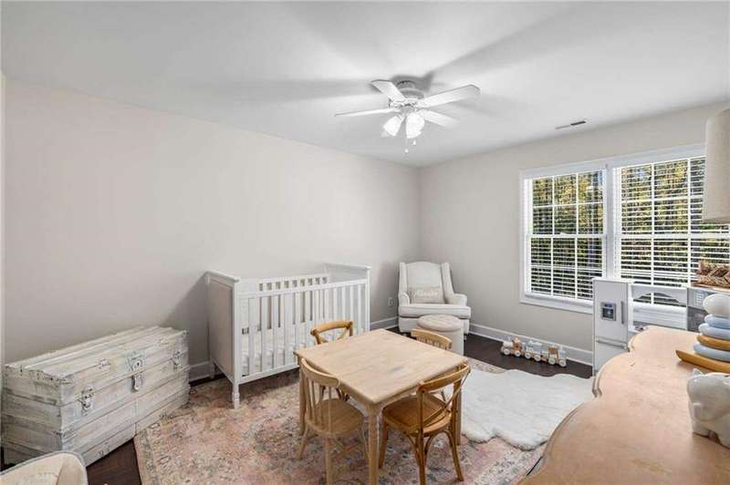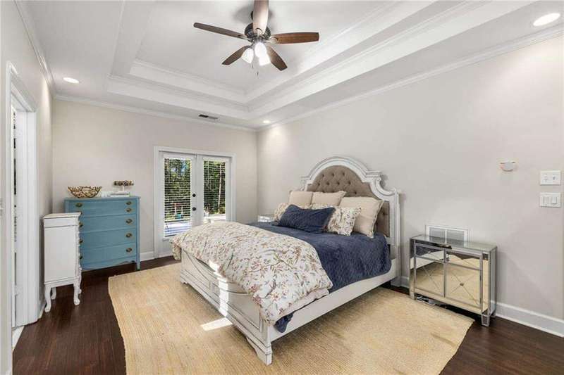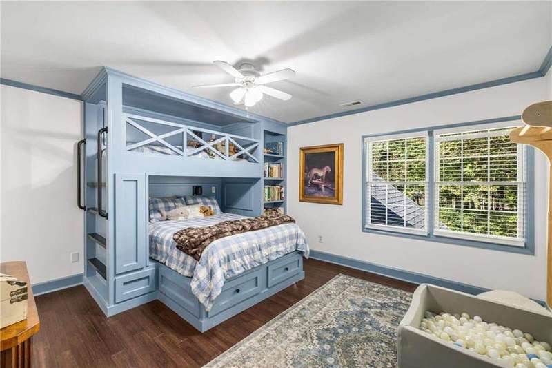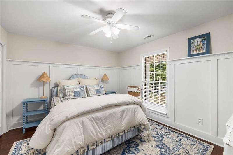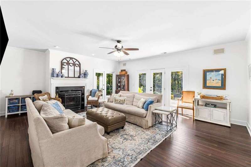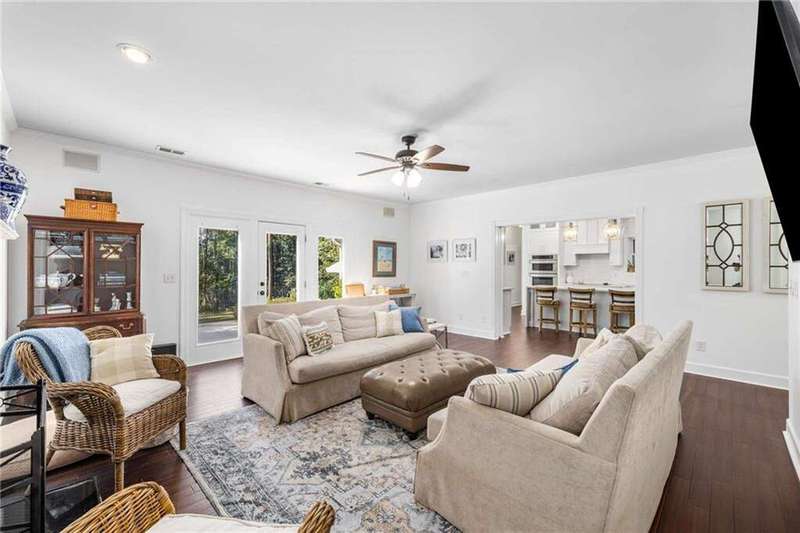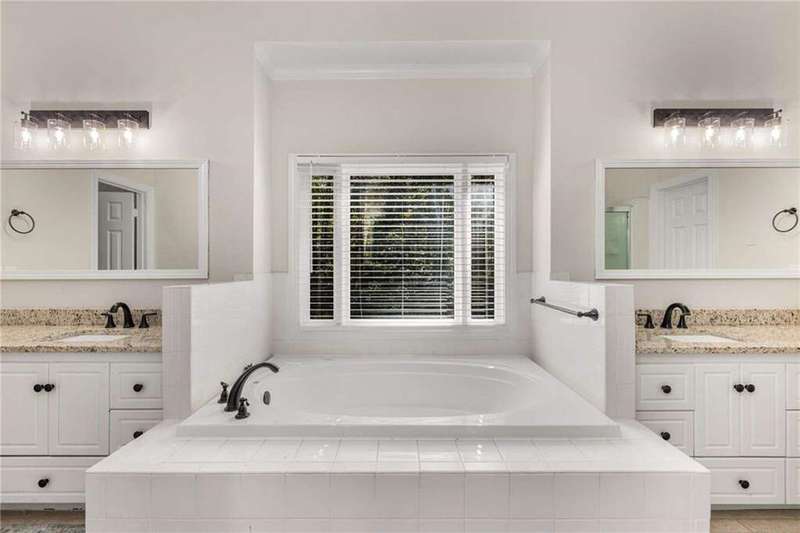 Privately tucked on 4.6 serene, wooded acres, this timeless three-sides brick Colonial blends privacy with polished sophistication and lives like a bespoke estate. A top-to-bottom refresh delivers a truly move-in-ready experience: dark bamboo wood flooring throughout the entire home sets a warm, contemporary tone; a custom-designed staircase railing anchors the entry; and every space has been thoughtfully elevated for daily comfort and effortless entertaining. The completely reimagined kitchen showcases an improved layout with widened openings to the dining and living rooms, including pocket doors for flexible flow. Culinary details impress, cooktop relocated to the back wall with exterior venting, custom cabinetry topped with quartz counters, tile backsplash, and a larger waterfall-edge island with seating. A farmhouse sink with Kingston Brass faucet and a charming breakfast nook with built-in bench complete this magazine-worthy space. Just off the main living areas, the renovated laundry room is both chic and practical-new tile, custom cabinets, quartz countertops with single-slab quartz backsplash, a stainless utility sink, deep enough for dog baths, new faucet, and a built-in dog kennel neatly tucked beneath the cabinetry. The primary suite on the main remains a serene retreat with beautifully refinished cabinetry, granite countertops, soaking tub, dual vanities, and two walk-in closets. Upstairs, smart planning created two full baths where there was once one: a new hall bath with shower/tub combo, fresh tile floors and walls, decorative trim, new vanity and fixtures; and a new private en-suite for the bedroom suite, featuring a stand-up shower, coordinated tile, decorative millwork, vanity, fixtures, and toilet. Secondary bedrooms are generous, and a custom built-in bunk, Twin over Queen, with bookshelf adds function and fun for guests or kids. French doors from the fireside family room open to a large, beautiful deck overlooking a sun-splashed, more open backyard. With coveted zoning for Dowell ES, Smitha MS, and Osborne HS, this residence pairs rare acreage and a quiet setting with curated finishes and modern systems-a luxury escape in the heart of Marietta.