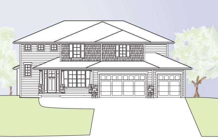 Build job, for comps only. The Mel floorplan by IHB Homes, LLC. Upon entering this popular 2-story home, guests are greeted by a grand foyer with a staircase leading to the second floor. A formal dining room awaits to the right, perfect for hosting dinners and gatherings. The heart of the home lies in the great room, featuring a beautiful fireplace and built-in shelves, creating a warm and inviting atmosphere. The open layout seamlessly connects the great room to the kitchen. The kitchen boasts a large island, custom cabinets, and a spacious walk-in pantry. A convenient drop zone area, built-in desk, and half bath nearby add to the functionality of the space. Stepping outside, the large covered deck provides the perfect spot for outdoor relaxation and entertainment. Upstairs, four spacious bedrooms await, each offering comfort and privacy. Bedroom 2 enjoys its full bath, while bedrooms 3 and 4 share a Jack and Jill bath. The highlight of the second floor is the luxurious owner's suite, featuring a stunning bath with a freestanding tub, walk-in shower, double sink vanity, and a walk-through closet that leads to the laundry room, adding convenience to everyday living. Hardwood flooring graces the upper-level hallway, adding to the home's elegance and charm. In addition to the home's impressive features, residents can also enjoy the community's amenities, including a pool, playground, and trails. Overall, this home offers both luxury and functionality, making it a truly exceptional place to call home