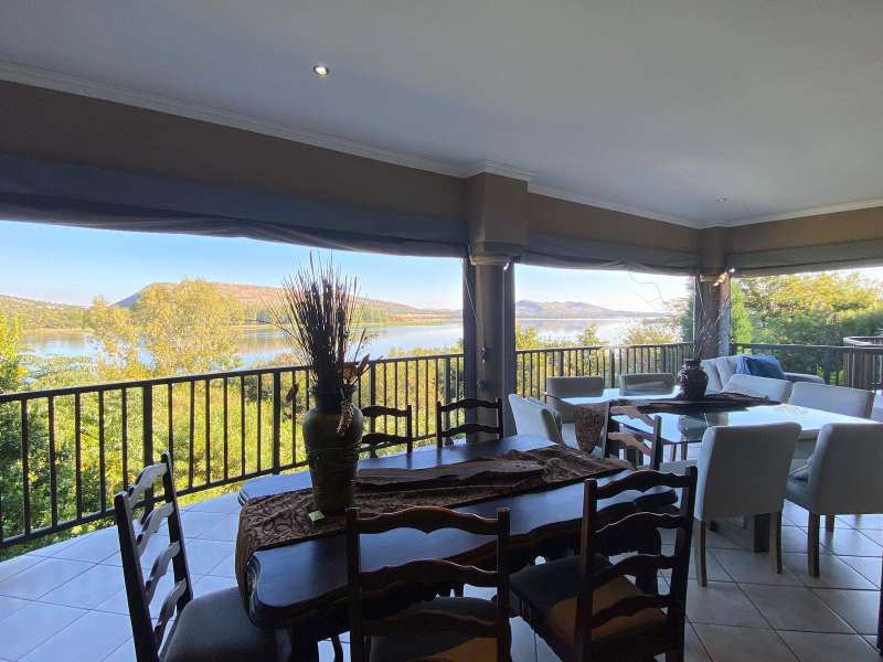 FAMILY OASIS WITH STUNNING VIEWS OF HARTBEESPOORT DAM Discover the ultimate family retreat on the tranquil shores of Hartbeespoort Dam. Nestled within a secure and prestigious Estate, this exquisite home offers an awesome lifestyle amongst breathtaking natural beauty. Residents enjoy access to a range of exceptional amenities including tennis courts, squash courts, a gym, and a communal pool. Step inside to find three spacious bedrooms on the ground level, highlighted by a luxurious main bedroom complete with a walk-in closet and full en-suite bathroom. The main bedroom opens onto a patio overlooking the lush green garden and the Hartbeespoort dam creating a serene retreat. Upstairs, expansive living areas seamlessly blend with an open-plan kitchen featuring a separate scullery, laundry, and pantry. Stacking doors open onto a patio boasting uninterrupted views of Hartbeespoort Dam and the surrounding valley, perfect for dining and entertaining. Additional features include an en-suite guest bedroom with a private balcony and a study that can double as a 5th bedroom, each offering their own private retreats. Parking is catered for with a double automated garage and double carport, ensuring ample space for vehicles. This precisely designed home offers the perfect blend of luxury, comfort, and functionality, making it ideal for both relaxation and entertaining. Don't miss the chance to make this stunning family home yours. Contact us today to arrange a viewing and start visualizing your future in this idyllic setting.