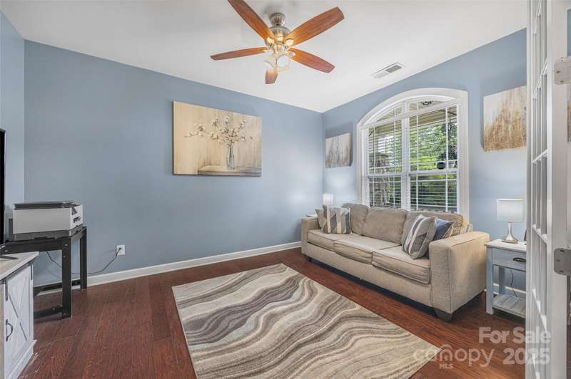 This inviting home offers an open floor plan designed for both comfort and entertaining. The spacious kitchen flows seamlessly into the living areas, creating the perfect space to gather with family and friends. The primary bedroom is conveniently located on the main floor, featuring plenty of space and comfort for everyday living. Upstairs, you'll find a versatile loft, an additional bedroom, and a full bath-ideal for guests or a private retreat. Work from home with ease in the private office, enhanced with stylish French doors. Step outside to enjoy your fenced backyard that borders green space, providing both privacy and peaceful views. Evenings can be spent relaxing on the covered back porch, the perfect spot to relax after a long day. This community also features a sparkling pool, giving you resort-style living right at your doorstep. With its thoughtful layout, modern touches, and inviting outdoor amenities, this home has everything you've been looking for!