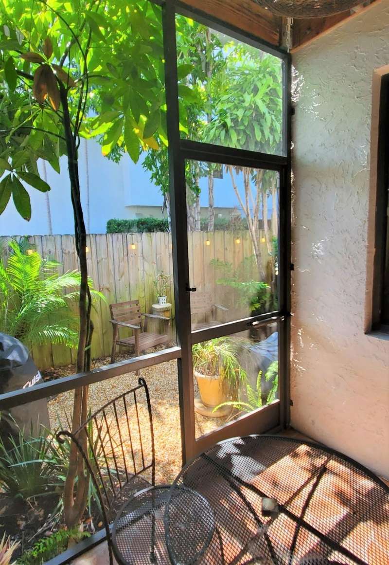 This charming townhouse is situated east of US1/Federal Hwy between Rio Vista and SE 17 Street Causeway. This desirable corner unit boasts southern exposure, offering abundant sunlight and privacy. It includes screened balconies and a private walled courtyard entrance. The living room includes a bonus nook, perfect for a home office. The generously sized primary bedroom also includes a screened balcony. Main bathroom has a vaulted ceiling with a skylight. Brand new sparkling pool! Parking for 2 vehicles tandem. Patio off the living room with ample space for a barbeque. Pet-friendly.