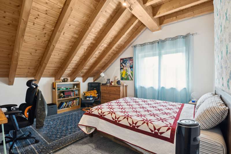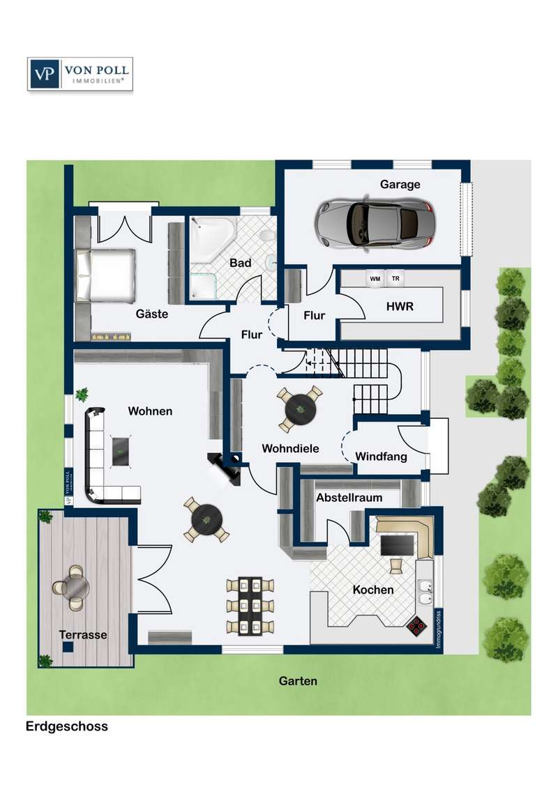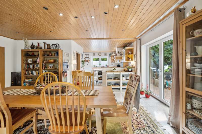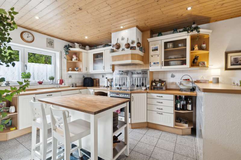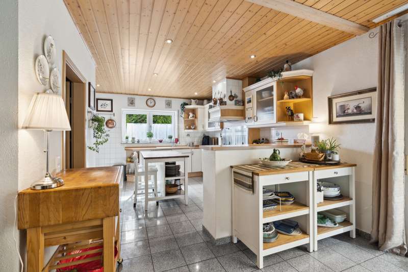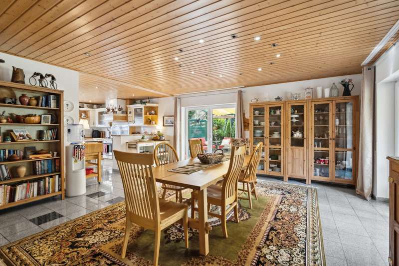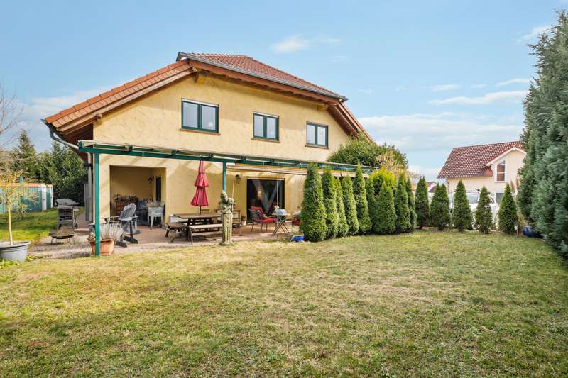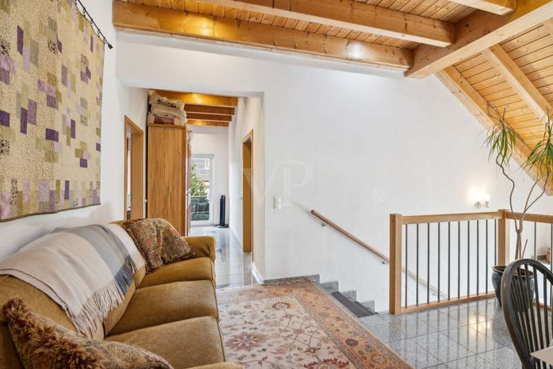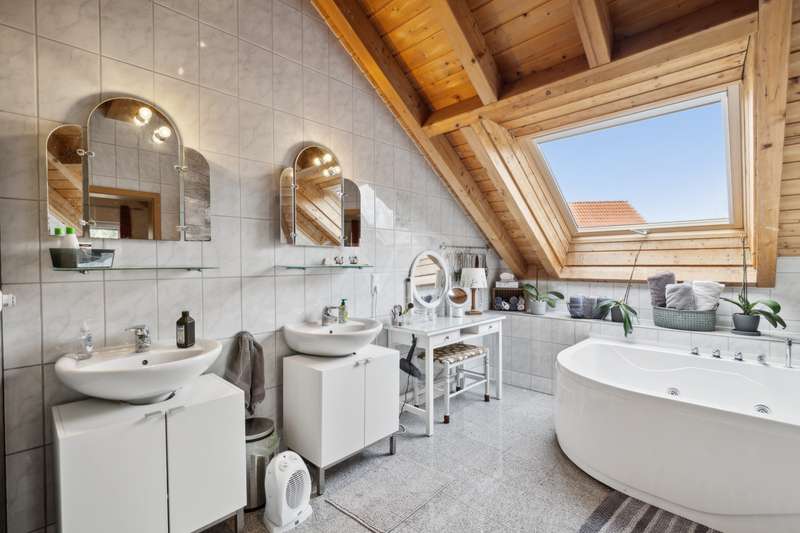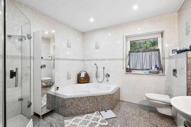 This impressive detached house from 2005 combines modern design with luxurious comfort and a generous room layout on approx. 320 m² of living space. It is located in a quiet and popular residential area and, with its 8 rooms and 3 bathrooms, offers everything you could wish for in an upscale home. On entering the house, you first reach the stylish vestibule, which flows gently into the spacious hallway. The hallway leads you into the open and light-flooded living and dining area, which is equipped with a high-quality fitted kitchen. This open-plan design creates a modern and inviting ambience. Large window fronts provide plenty of natural light and offer direct access to the terrace, which is ideal for spending relaxing hours outdoors. The entire house is laid with fine granite tiles, which not only create a particularly elegant look, but are also easy to clean and durable. There is also a luxurious bathroom on the first floor with a bathtub and soothing light therapy, which is perfect for rest and relaxation. Upstairs, you will find three spacious children's bedrooms and another bathroom, which is also equipped with a bathtub and light therapy. The master bedroom is a private retreat with its own bathroom that leaves nothing to be desired. Here you will find a whirlpool, a walk-in shower and a balcony from which you can enjoy a wonderful view of the greenery - the ideal place to start or end the day in a relaxed manner. The house not only impresses with its high-quality furnishings, but also with its well thought-out room layout. The underfloor heating provides pleasant warmth in all areas and contributes to a comfortable indoor climate. Modern technology is integrated throughout the house, including a sauna, which provides additional luxury and relaxation. Fine materials and first-class fittings give every room a special touch, making living in this house an exceptional experience. Further features include a garage, two parking spaces and a spacious garden, which ideally complements the house. The property is in an extremely well-kept condition and is waiting to be taken into possession by a family that values quality and a harmonious living atmosphere.