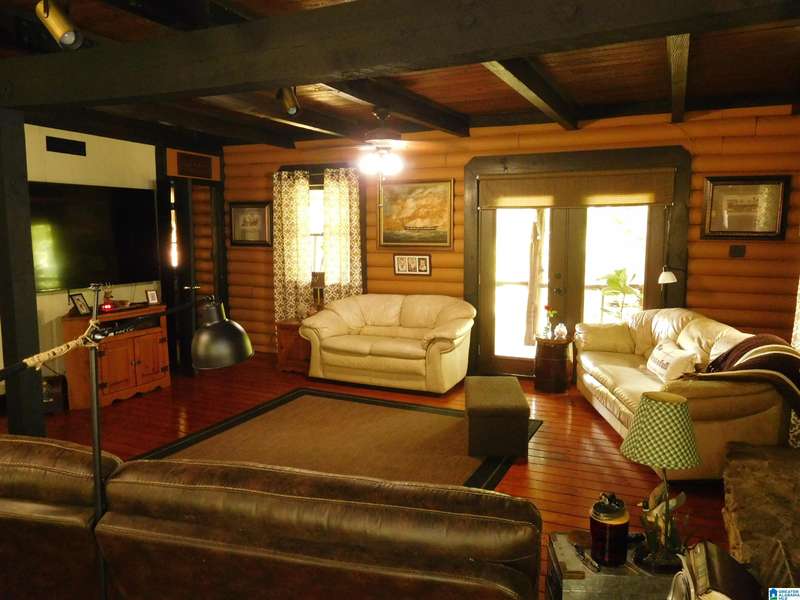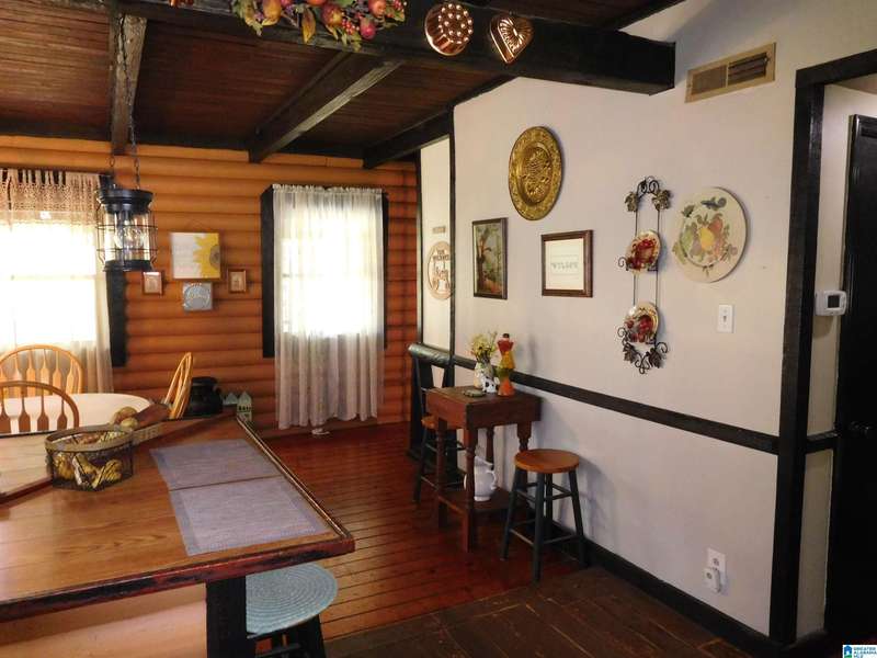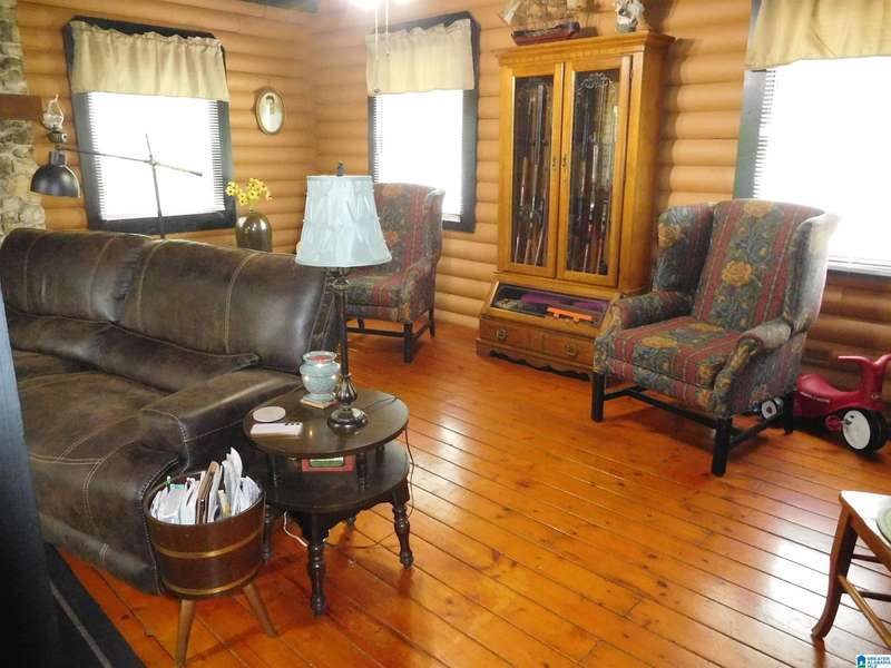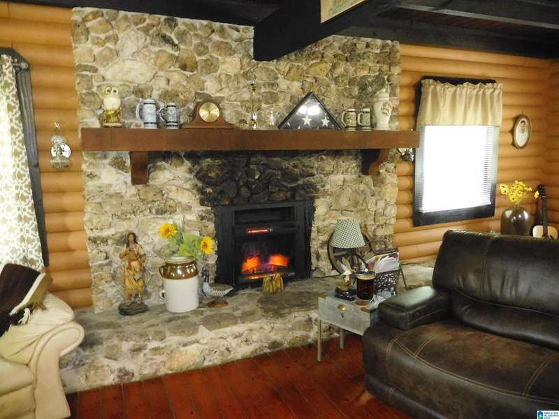 This lovely 2 story, 3 BR w/ 2 BA & 2 1/2 BAs Log home is situated on 2.89 wooded & private acres. A wonderful front porch offers a pretty & peaceful setting to enjoy the beauties of nature everyday. A Spacious Great Rm has a Rock Fireplace w/electric Logs & Blower. The kitchen has been updated with white cabinets & SS appliances & includes an island & breakfast bar & the dining area joins the kitchen for easy access for family gatherings. The Large Master Bedrm can be your own sanctuary with many options for work &/or relaxation with views out all windows in the room as well as throughout the home. All Floors are Pine. The Storage Building will remain plus other items. The list is on the Kitchen Counter. Seller will also provide a 1 YR American Home Shield Shield Plus Home Warranty & Termite Bond with Stark Exterminators. ROOF approximately 5 yrs, HVAC 3 yrs A Copy of Survey also Available to view on Counter. Trussville Address but located in St. Clair County. Springville Schools
