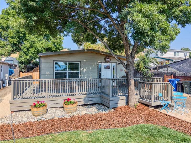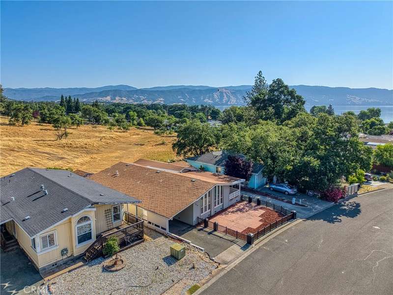 Beautiful 1850 Sq. ft home nestled in the desirable Walnut Estates. This lovely property offers exceptional parking convenience with two driveways flanking the house. A striking front patio, enclosed by an elegant black wrought iron fence, welcomes you. Step inside to discover a bright and open floor plan bathed in natural light. The spacious front living room and family room seamlessly connect and flow out to a charming covered deck, where you can enjoy a partial view of the lake. Kitchen, features a propane range, dishwasher, pantry, and a convenient pass-through that overlooks the formal dining area. A breakfast bar provides a casual dining alternative. The interior laundry room also serves as an access point to the hall bathroom, which includes a walk-in shower. Additionally, the first bedroom offers direct access to this hall bath. The generously sized primary bedroom boasts a large walk-in closet and a separate makeup/dressing room. The en-suite bathroom provides a relaxing retreat with both a walk-in shower and a soaking tub, all while offering a pleasant view of the open space behind the property. For year-round comfort, the home is equipped with central heating and air conditioning, along with a monitor heater for supplemental warmth. Ample parking is available with covered parking on one side, complete with a storage shed, and additional open, flat parking on the other side. This wonderful home's location is a true highlight, situated close to the lake, offering endless opportunities for year-round water sports, fishing, and outdoor adventures. The vibrant Lakeport community also offers an active lifestyle with a variety of local events.