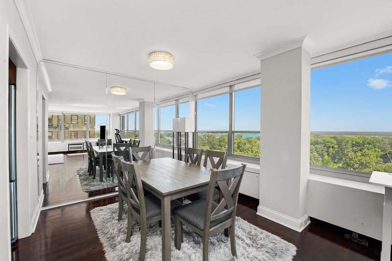 Welcome to 3550 N. Lake Shore Drive, Unit 1002. This southeast corner 2-bedroom/2-bath in the South Tower has 17 windows that provides an enormous amount of natural light not to mention vacation views of the Lake, Belmont Harbor & Navy Pier! The open and expansive floor plan allows for a multitude of furniture placement and living arrangements. An updated, open cook's kitchen offers maple cabinetry, granite counter tops with a full backsplash, double sink and stainless steel appliances. There's "true" hardwood floors throughout the unit complimented with gorgeous crown molding. The second bedroom has stunning views as well and a full wall of closets...just across the hall is the 2nd bath complete with a walk-in shower and gorgeous wall and floor tile. The primary bedroom is "Huge" with plenty of space for a king size bed, night stands, dresser and sitting area...along with a walk-in closet. The updated primary bath features a deep soaking tub and contemporary vanity, lightly and mirrors. 3550 North Lake Shore Drive is a high-end, full-service building with 24-hour door staff, roof top decks, party room, fitness room, commissary, 2 laundry rooms, secure receiving room, on-site management office, and maintenance staff. Monthly valet parking is available for 160...no wait. Public transportation at your front door. Walk to the Lake, Wrigley Field, and all of East Lakeview. Assessments include heat, water, and Xfinity expanded cable. Owner pays electricity and internet. No dog and non-smoking building. No in unit washer/dryer allowed. Owners must own for 18 months before renting, but there is no "Rental Cap". Reserves are approximately 9M | No specials planned or pending. NOTE: 3550 has first right of refusal, therefore, FHA financing is not allowed.