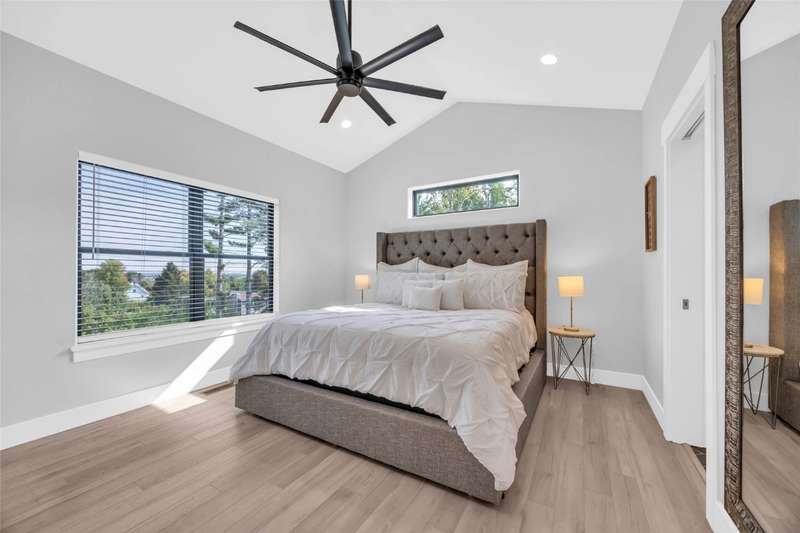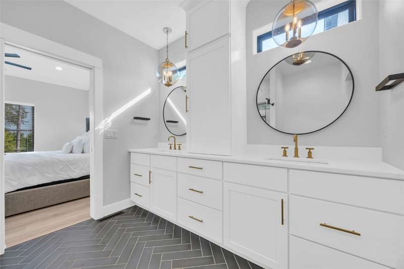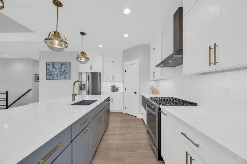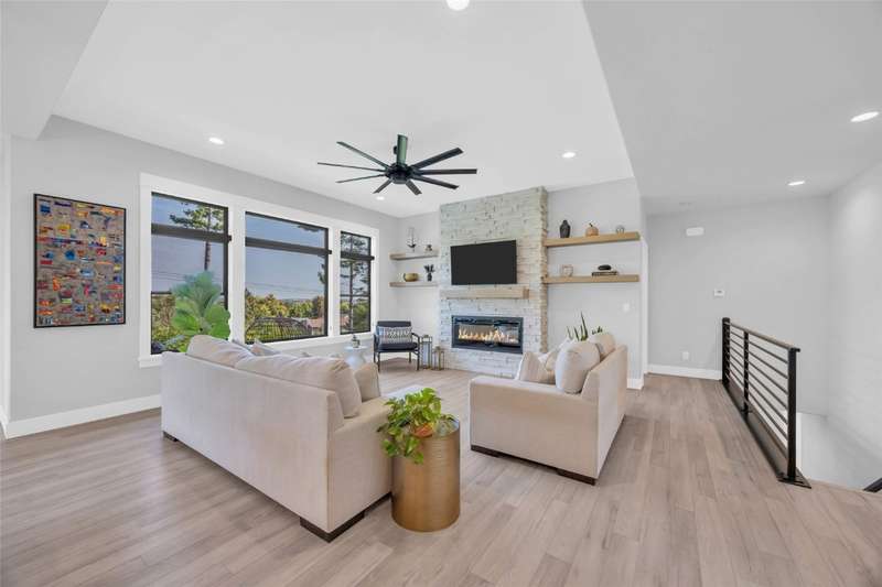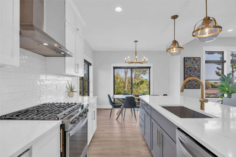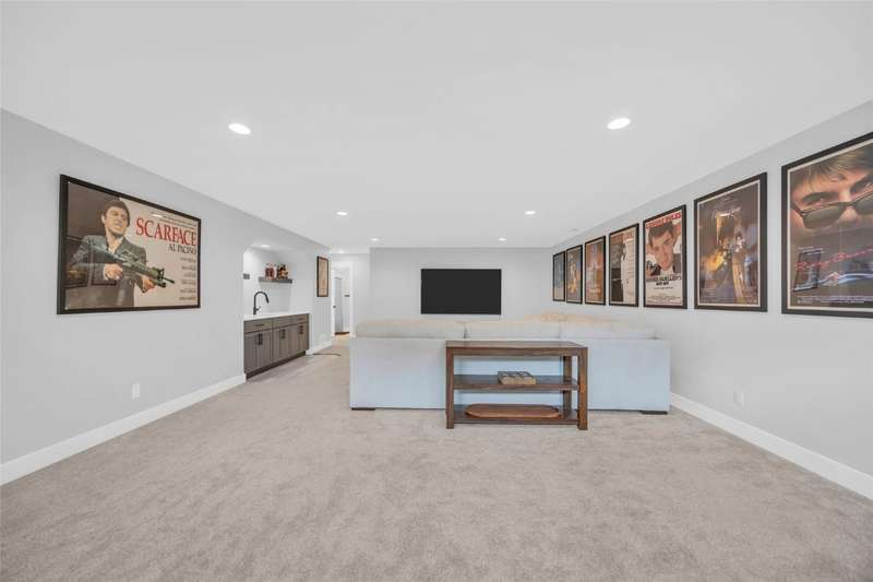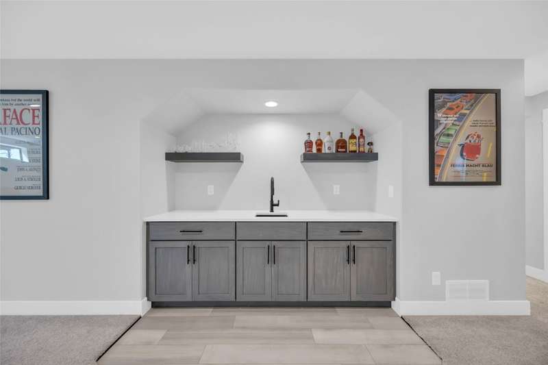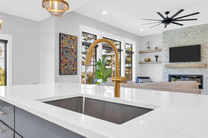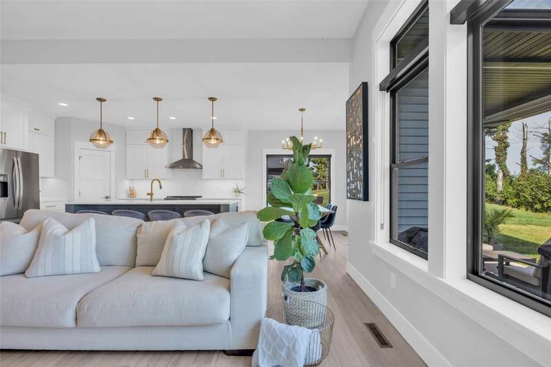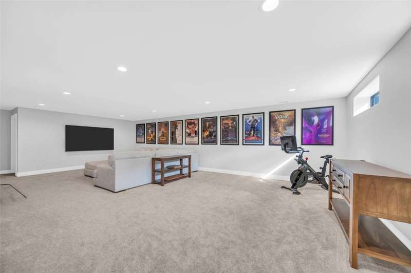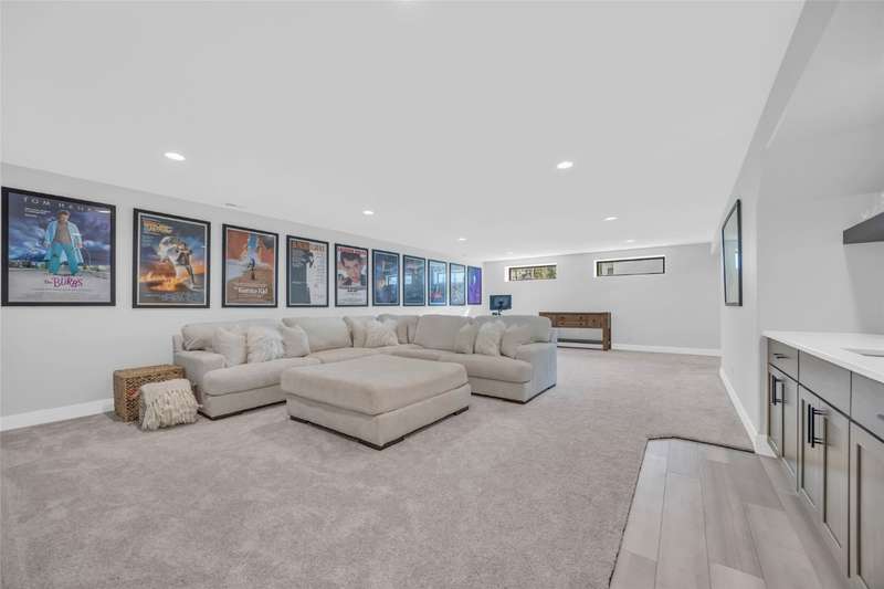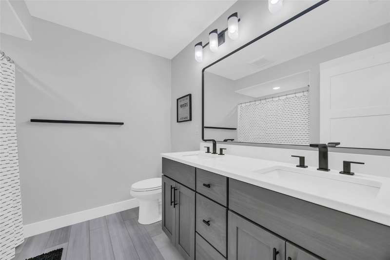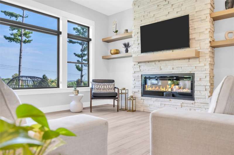 Step into luxury with this 2022 custom-built home in the sought-after Dell Ridge Estates. Welcomed by a charming front covered porch, you’ll find a great modern floor plan with white oak natural flooring, vaulted ceilings in the primary suite, and convenient access from the primary bedroom to the laundry. The chef’s kitchen showcases Calcutta gold quartz countertops, stainless steel Whirlpool appliances, and a walk-in pantry, opening to a spacious living area anchored by a striking floor-to-ceiling stone fireplace. Tons of upgrades throughout include Marvin black windows, wood-encased trim, and a 3-stall garage with flat driveway, floor drains, and pre-stubbed heat. Outdoor living is equally impressive with a covered back patio backing to mature trees—perfect for relaxing evenings or entertaining guests. The finished lower level expands your living space with a large rec room ideal for a theater room, a wet bar, plus two additional bedrooms and a full bath—perfect for family or guests. Located with easy access to Highway 380, Dell Ridge Estates also features a stocked neighborhood pond for fishing and peaceful weekends. This home blends elegance, comfort, and function in every detail.