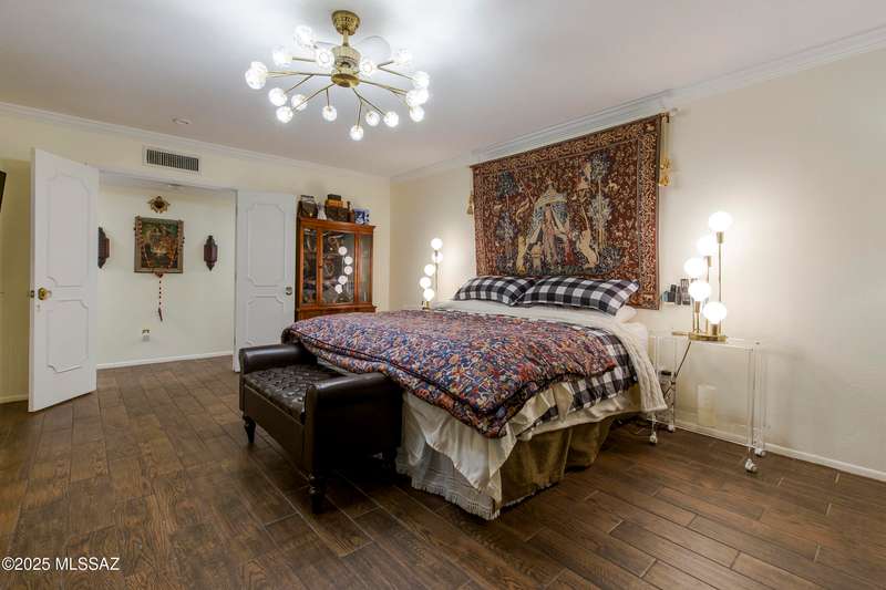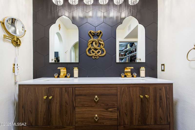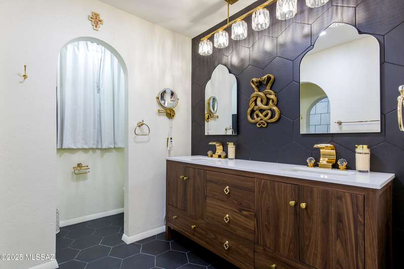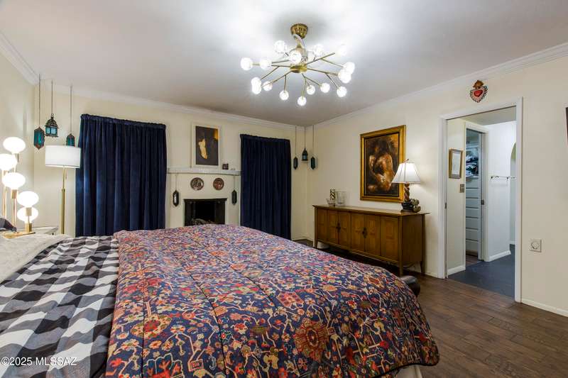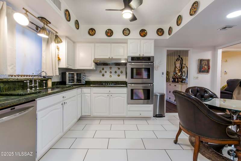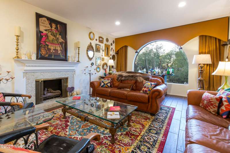 Discover Colonia Verde: Experience the perfect blend of charm and upscale living! Step inside this beautifully updated home and discover a thoughtfully designed layout that's both inviting and impressive. With three bedrooms and two fully renovated bathrooms, plus three inviting gas fireplaces, every corner is designed for comfort and elegance. Highlights include:Living Room: Enjoy a generously sized living space featuring an oversized arched window framed by custom drapes and the first of three charming gas fireplaces create a cozy, elegant atmosphere. Formal Dining Room: Elegant wall-to-wall built-ins for all your entertaining needs. Gourmet Kitchen: Breakfast nook, double oven, two oversized stainless sinks, five-burner gas cooktop, and striking rough-edge....