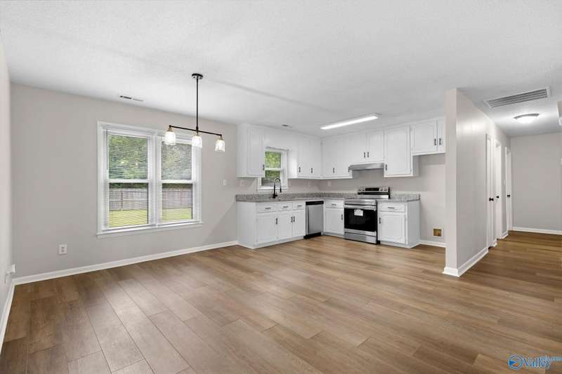 This updated 3-bedroom brick ranch features granite counters, LVP flooring, fresh paint, new fixtures & appliances throughout. Covered front porch welcomes you inside. Large fenced backyard extends beyond fence line to open grounds with firepit & detached storage building. Camper shed/garage with hookups for septic, power, water & concrete parking pad. Gates on fences provide added privacy. Recent updates make this home shine—exceptional value at this price point! Schedule your showing today!