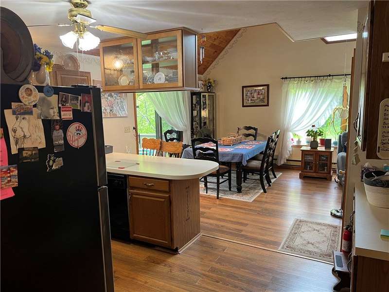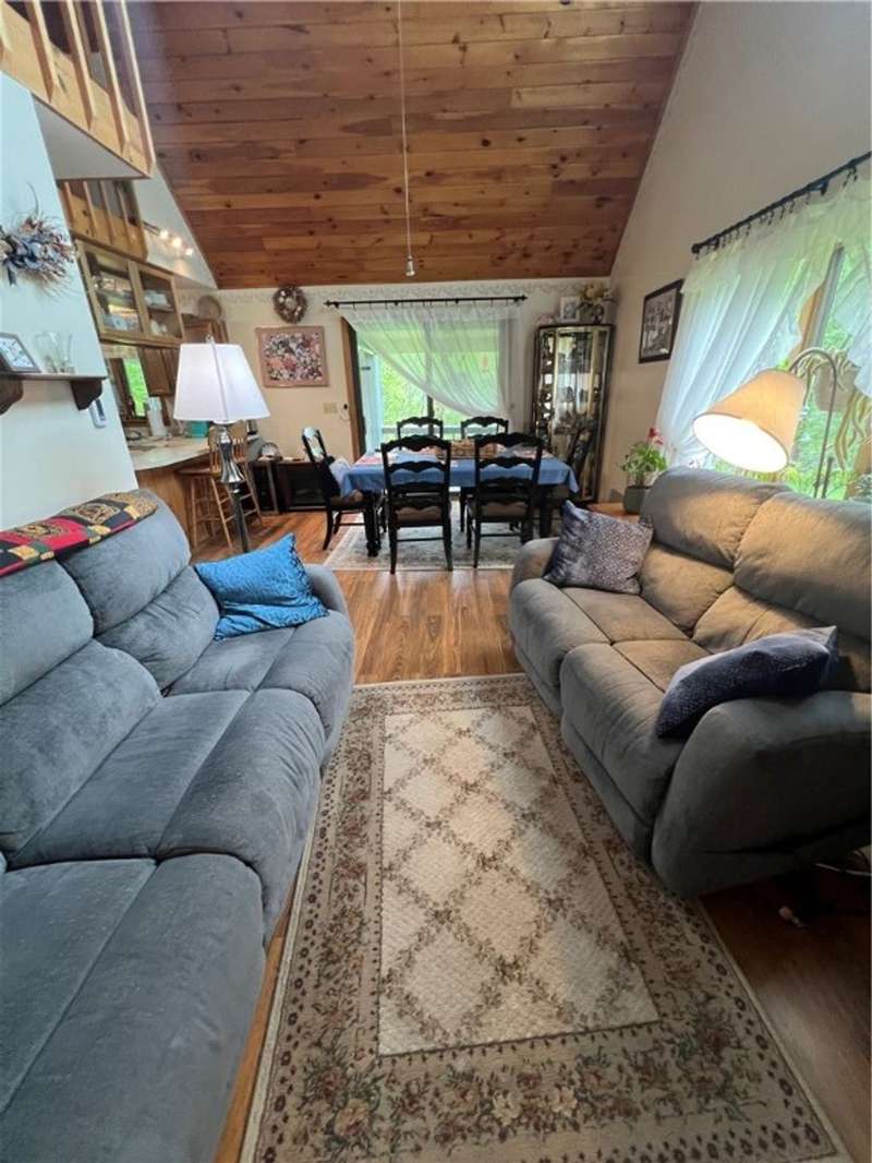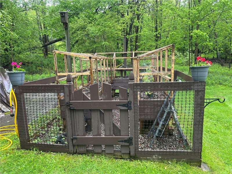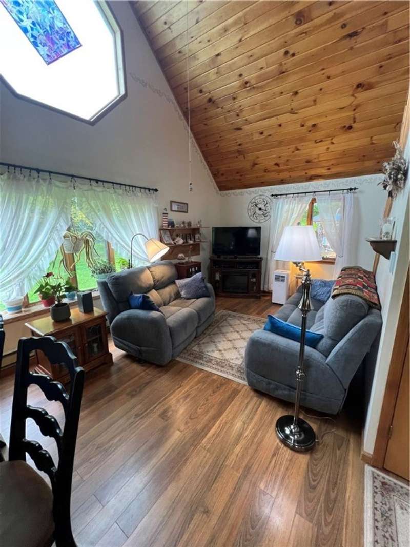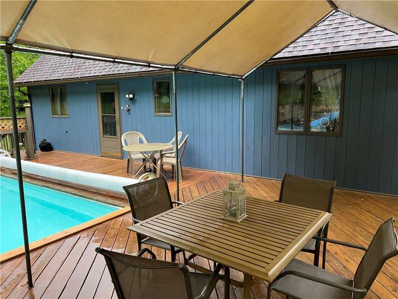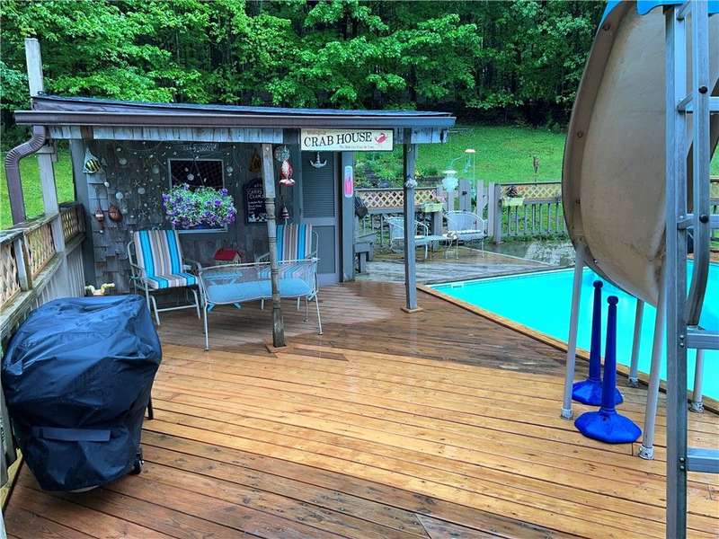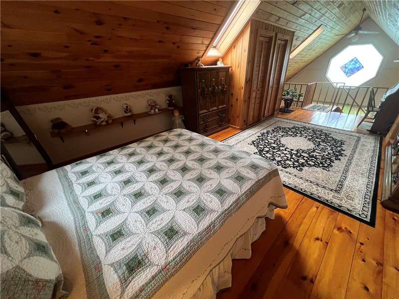 Private, secluded, serene contemporary home on 8-acre lot among rolling hills quickly brings you back to nature. Open floor plan with living and dining rooms with kitchen under a sweeping knotty pine cathedral ceiling. Primary bedroom above in large, skylighted 250+ SF loft space, two carpeted bedrooms on first floor with renovated, radiant floor-heated full bath. Relax while watching deer and wildlife on the sweeping front lawn on your covered front porch or three-person window-enclosed hot tub room. Summer barbecues are even sweeter after cooling off after taking a dip in the pristine 32'x16' in-ground pool and deck surround with pool house as a frog looks over a nearby water feature. Walkout basement with second bath, stacked laundry, workshop and two finished rooms for office, exercise or guest room spaces. Back-up generator. Detached two-car garage and raised-bed gardens are a few steps away. A short drive to Walton, Delhi and I-88.