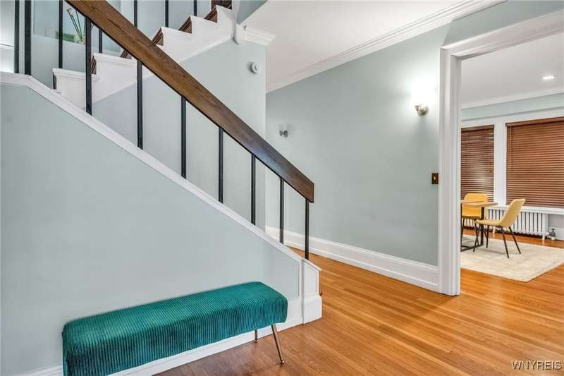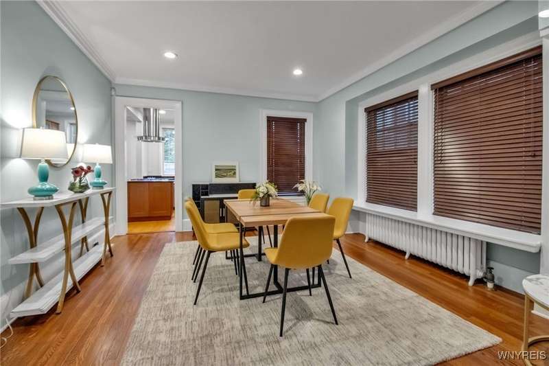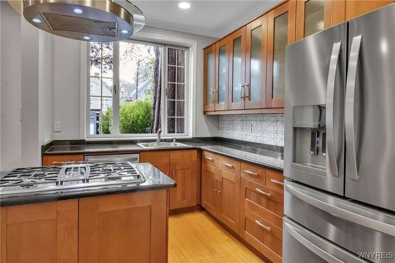 Stunning Elmwood Village home just steps away from specialty shops, parks, and fine dining.Beautifully renovated and decorated throughout, this fabulous find is ready for you to just fill the fridge and hang your clothes.First floor showcases an elegant entranceway with a magnificent front door and sunlit foyer.Lovely family room with wonderful windows, formal dining area, and a chef's kitchen with custom cabinetry, countertops, and top of the line appliances. Pretty powder room!2nd floor boasts all nice sized bedrooms, terrific closets, and beautiful full bath.3rd floor adds endless possibilities for play, work, and guests with 2 more rooms, and another gorgeous bath.Private large deck and yard make summer entertaining a breeze!Loads of storage, gleaming hardwoods, radiant heated floors in baths, designer paint colors, outdoor cameras with security.Newer windows, ungraded electrical, new split system (heating/cooling by T Mark, new garage doors and sump pump). I'd like to Welcome you to your home! Square footage based on finished third floor.