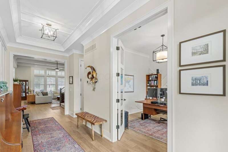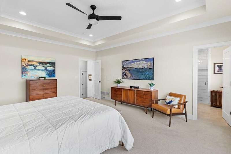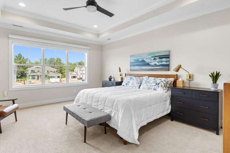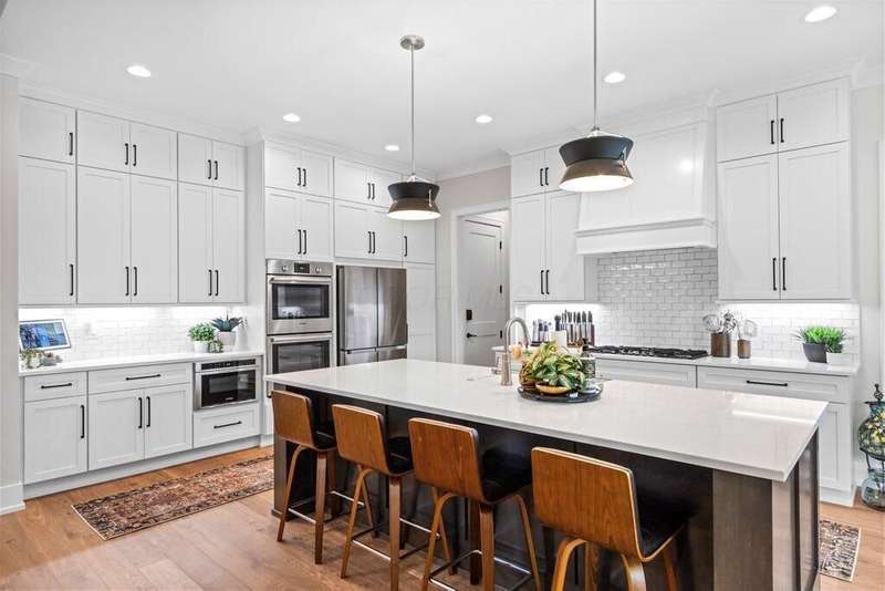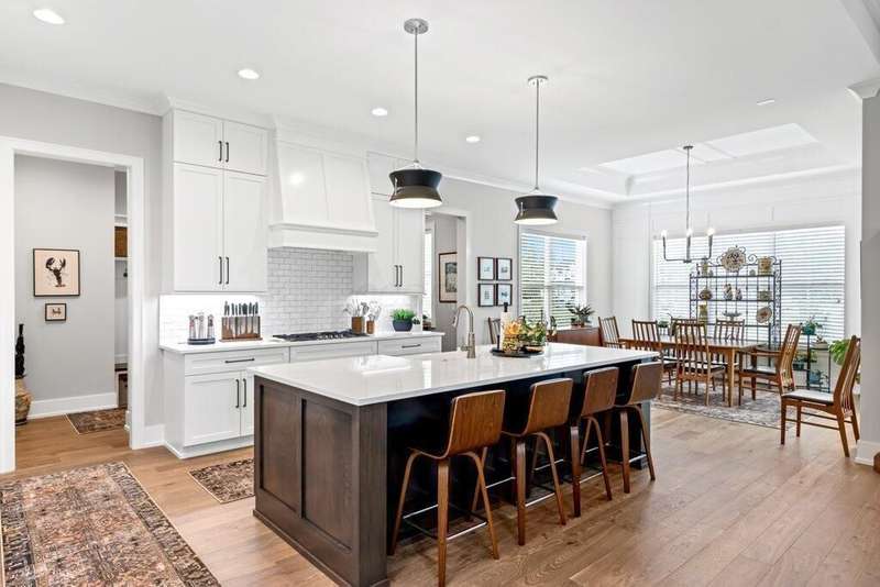Priced below appraised value! and nearly $20K in upgrades to this nearly new home! From the moment you arrive, the beautiful exterior welcomes you into a thoughtfully designed interior filled with warmth and elegance. The main level showcases soaring 11-foot ceilings, exquisite woodwork, a private office/den with glass doors, a walk-in pantry, mudroom, and a luxurious kitchen with quartzite counters and cabinets that expand to the ceiling. The kitchen flows seamlessly into a spacious great room ??? perfect for entertaining or everyday living.Step outside from the kitchen to a covered veranda that opens onto an expansive patio, surrounded by upgraded landscaping for added privacy and beauty.Upstairs, you'll find four generously sized en-suite bedrooms, each with a walk-in closet. Three of the bedrooms are spacious enough to comfortably accommodate king-size beds and full furniture sets.The lower level is impressively large, with high ceilings that make the space feel open and inviting ??? ideal for a media area (fits an 85-inch TV), game room, dining space, or creative zone. It also includes a fifth bedroom, full bath, and ample storage.The oversized 3-car garage is built to accommodate large trucks or luxury SUVs, with additional space for storage.Upgrades include window coverings - some motorized, upgraded ring doorbell with added secdurity measures, luxury refrigerator and more!