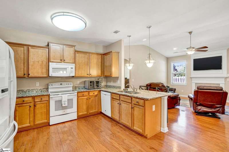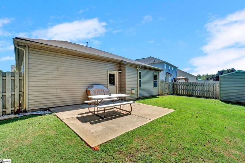Located in Powdersville, this hardly lived in cutie pie feels almost new and is ready for someone to love her. Craftsman style details set the tone, while comfortable colors and fresh open space make the home inviting from the moment you step inside. The dining area is oversized and ideal for family gatherings, with room to add cozy chairs or extra seating when needed. This is an amazing flex space. The kitchen is designed with both function and beauty in mind. Miles of granite counters, gleaming hardwood floors, and an abundance of cabinet space make it a dream for anyone who loves to cook or entertain. A cheerful breakfast area is the perfect spot to start the day. The open concept between the kitchen and family room makes this one of the most sought after floor plans, and the rich hardwood flooring ties the spaces together seamlessly. All living is on one level, which makes the home as practical as it is stylish. The primary suite is tucked away for privacy and includes everything you would expect in a retreat. A large soaking tub, double sinks, a walk in shower, a huge closet, and soothing paint colors create a space that feels restful and refined. Guest bedrooms and a full guest bath are generously sized, giving everyone plenty of comfort. Step outside to find a patio ready for grilling and outdoor living. The fenced yard is level, with lush grass and even an outbuilding to keep your tools and lawn equipment handy while leaving the two car garage uncluttered. There is even an extra parking pad for your car or for company that stops by. Life in Rose Hill subdivision comes with the added enjoyment of a community pool and clubhouse, perfect for summer fun and neighborhood gatherings. The location could not be better. In the heart of Powdersville, you are just minutes from downtown Greenville while benefiting from Anderson County taxes. Nearby Anderson One schools are highly regarded, adding even more appeal. This is a home that brings the best of everything together: nearly new construction without the wait, a thoughtful floor plan, and a setting in one of Powdersville's most desirable communities. 100 Amherst Way is ready for its next chapter.