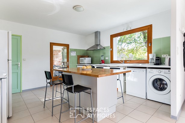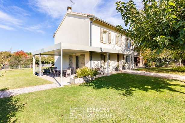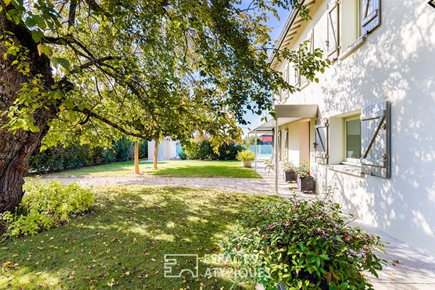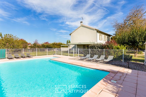 Located in Montauban, this former farmhouse has been renovated into an elegant 354sqm residence and sits on a vast wooded plot of nearly 3,300sqm. Completely redesigned in 2012, it now houses several independent dwellings. A 6-room house and four 2-room apartments form a harmonious ensemble where the charm of the old dialogues with contemporary fittings. A rare property, ideal for a family project, a furnished rental investment, or a tourist reception business. The main house, a spacious 6-room apartment, opens onto a bright living room with an open kitchen, inviting conviviality.