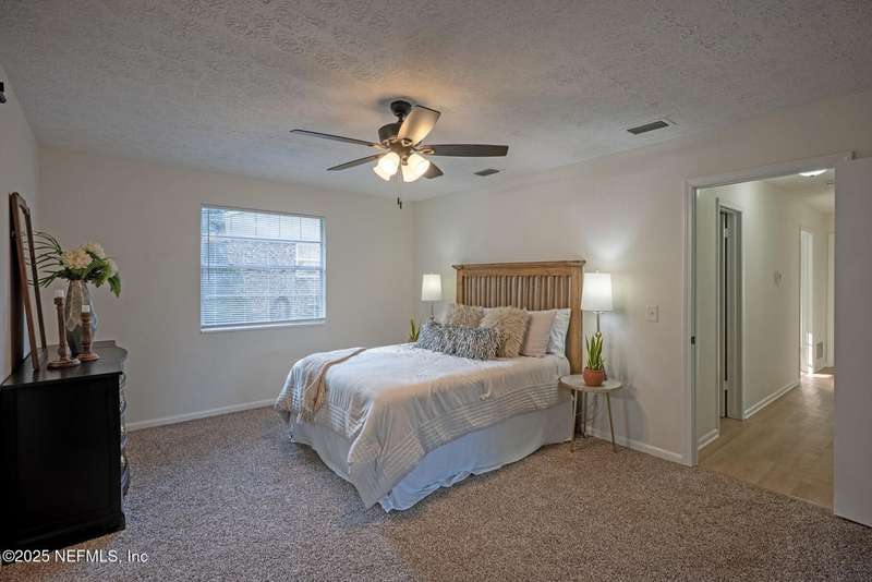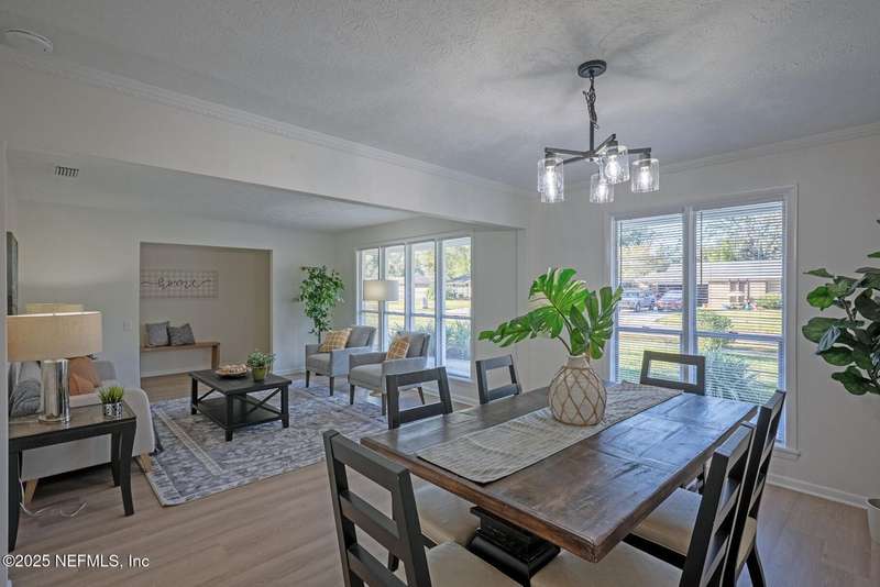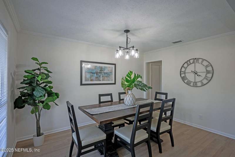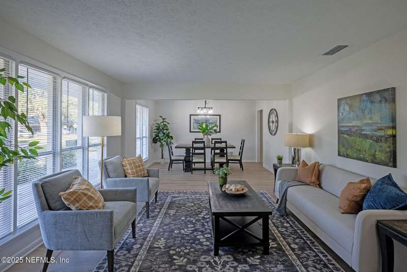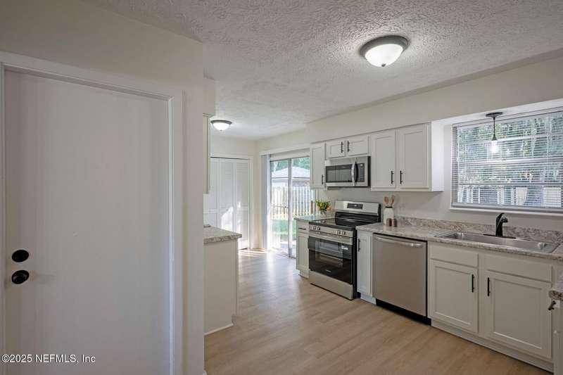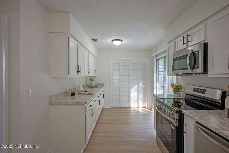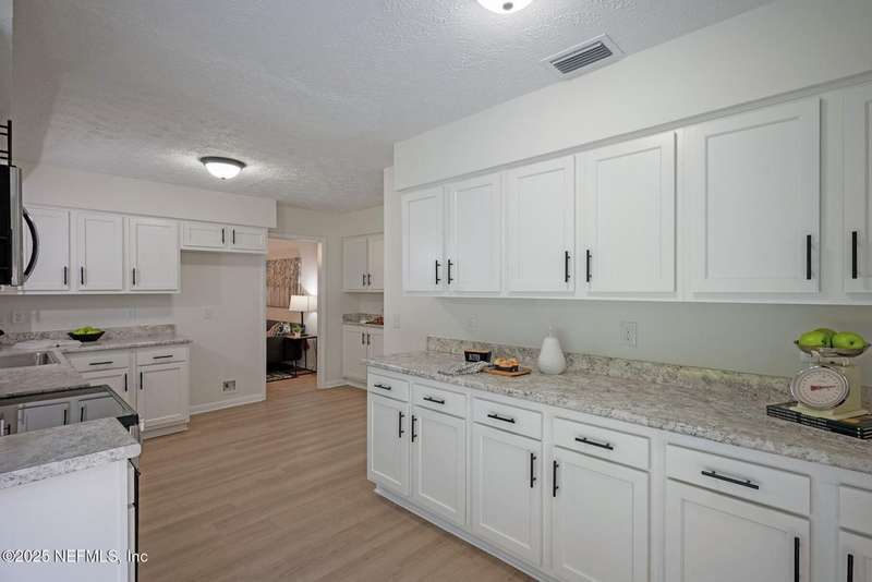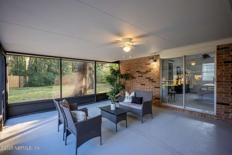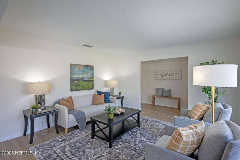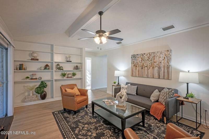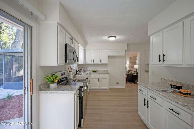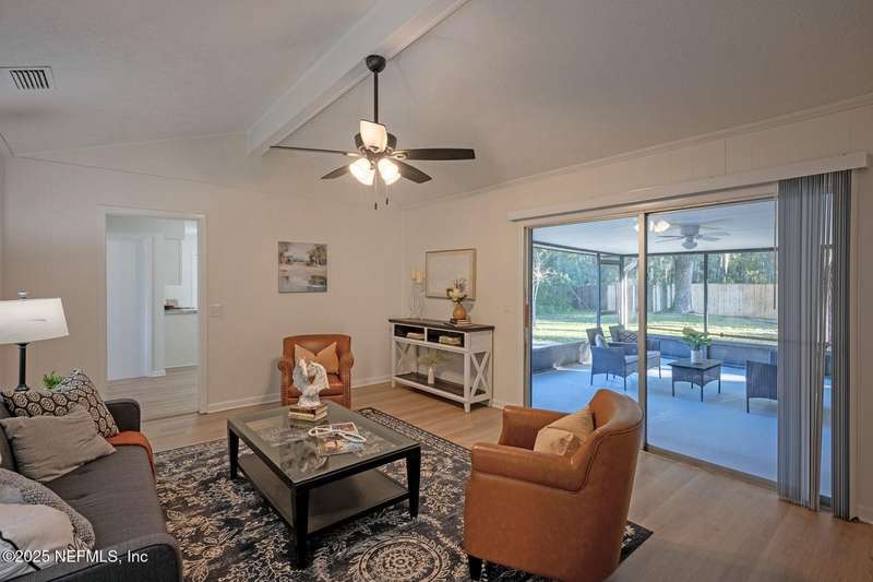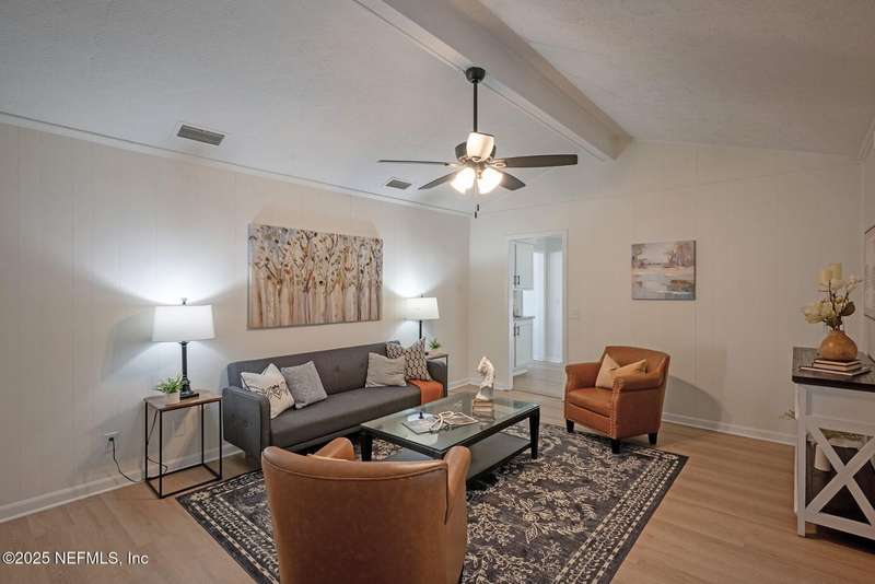 Spacious three-bedroom, two-bath brick home .1,755 square ft of living space. Built in 1975, this home features a new kitchen with shaker-style cabinets and stainless steel appliances, including a stove, microwave, and dishwasher. The interior and exterior freshly painted , with luxury vinyl plank flooring in the main living areas and new carpet in the bedrooms. Additional updates include new lighting and ceiling fans throughout, a Siemens 150-amp electrical panel, and a newer HVAC system from 2023. The home offers a comfortable layout with a living room, dining room, and family room. The living room features built-in shelving and a sliding glass door leading to the large screened back porch and fenced backyard, perfect for relaxing or entertaining. The primary suite includes a barn door leading to the updated bathroom with a walk-in shower. Both bathrooms have been tastefully updated, and the home also includes an indoor laundry room. Roof replaced in 2015. No HOA or CDD here !!
