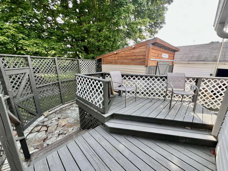 . Welcome to this spacious 5-bedroom, 2-bath home sitting on a nice corner lot in the city limits of Brodhead. Step inside to fresh paint throughout most of the home and brand-new carpet on the main level. The living room is large and welcoming perfect for relaxing with family or guests. The eat-in kitchen features freshly painted cabinets and comes with all appliances, making everyday meals a breeze. The primary bedroom is located on the main level and offers a huge walk-in closet. There's also a flexible bonus room that can be used as a home office, playroom, or hobby space. The large utility room adds even more convenience for laundry and storage. Out back, you'll love the huge deck perfect for cookouts, get-togethers, or simply enjoying the fresh air. A section of the yard has privacy fencing. The covered front porch is ideal for quiet mornings or evening unwinding. One of the best features of this property is the detached garage. It has space to park your vehicle, plus a finished office area with its own private entrance great for working from home, running a small business, or creating your own getaway space. There's also a very nice enclosed sitting area, which could be used as a relaxing outdoor room, a workshop, or extra storage. Located directly across from Brodhead City Park and just minutes from Brodhead Elementary, this home offers comfort, space, and flexibility. With city water and sewer, it's move-in ready and full of potential.