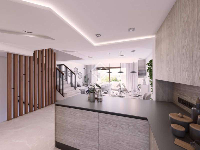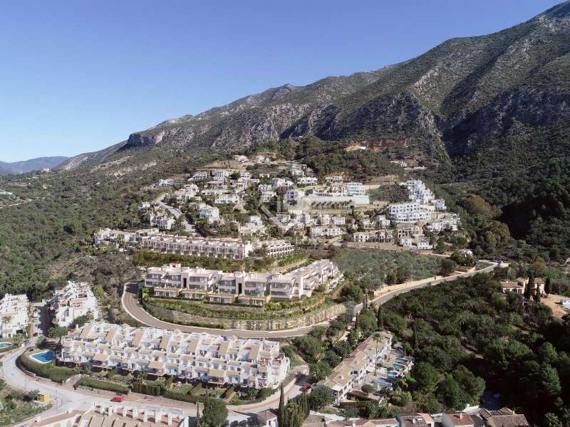 The new resort development comprises 7 small residential centres with apartments and semi-detached homes nestling on the side of the mountain. Almazara Hills is the first project on sale, comprising 32 exclusive apartments with the best panoramic views at the highest part of the development. The project includes 4 blocks of 3 floors with homes in contemporary “open plan” style but with a rustic appearance that blends into the natural surroundings. Apartments with 2 and 3 bedrooms and penthouses with a solarium, with large terraces, communal pool and gardens with Mediterranean vegetation. Almazara Views is the second project on sale, comprising 23 exclusive townhouses with the best panoramic views at the highest part of the development. All the homes have unrestricted views with a south-easterly aspect towards the Marbella Bay and Gibraltar. The homes are delivered fully equipped, with premium brand finishings, ready to move in. They also have an underground parking space and a storeroom. The new development is connected by wide roads with pavements, landscaped gardens, visitor parking and rural pathways amongst the forest areas so that you can relax in tune with nature. A unique residential experience on the Costa del Sol.