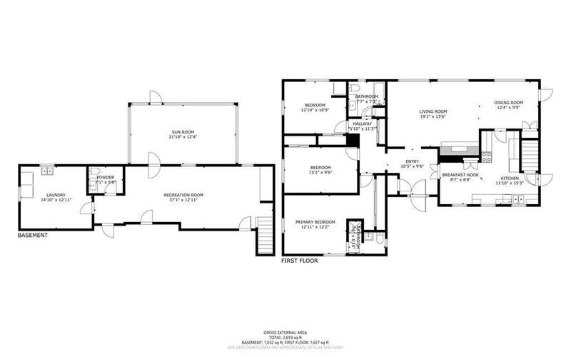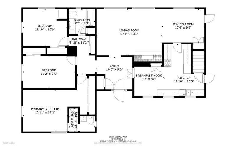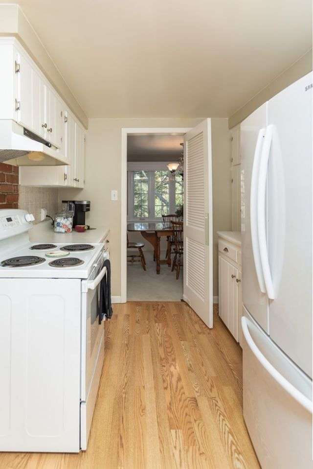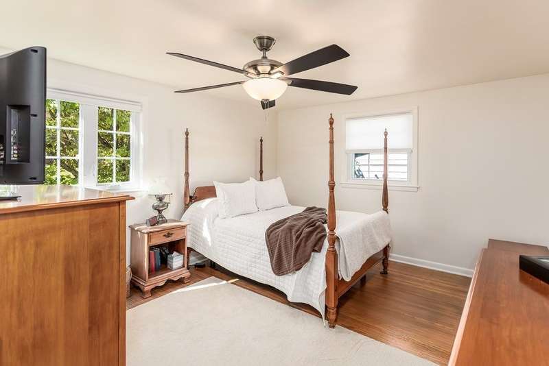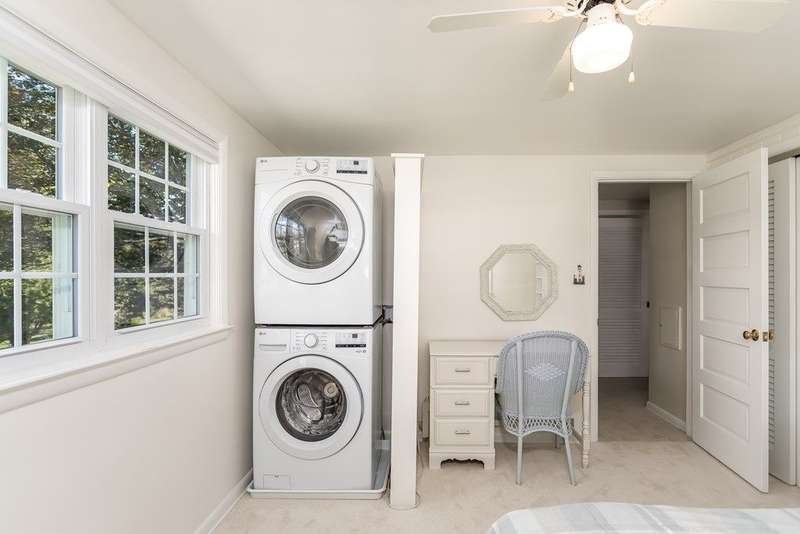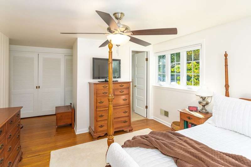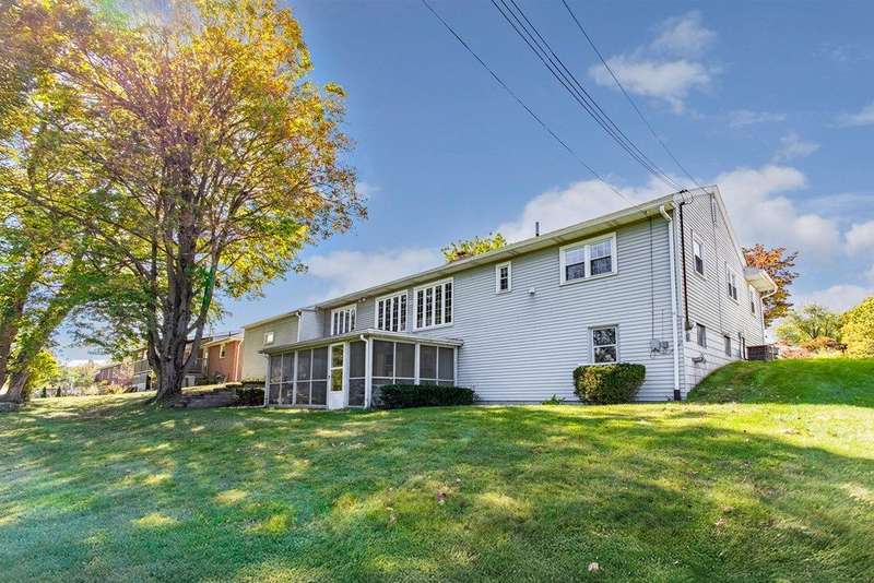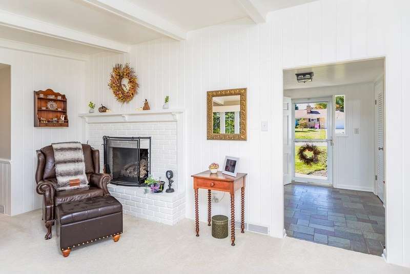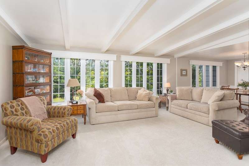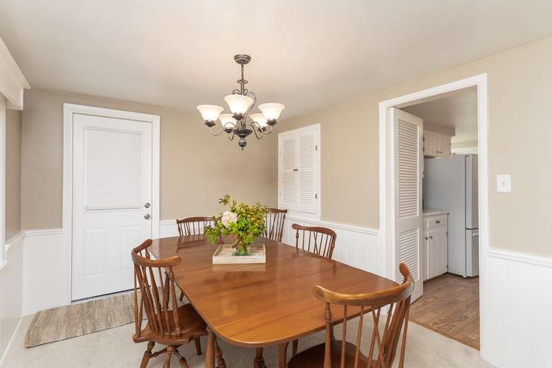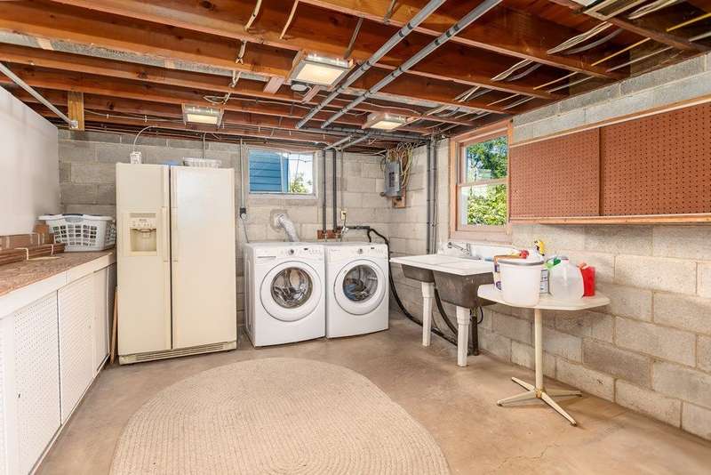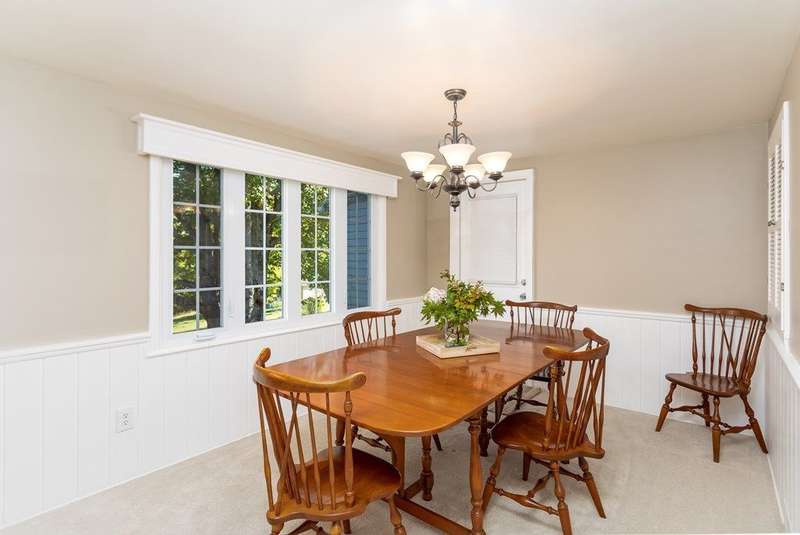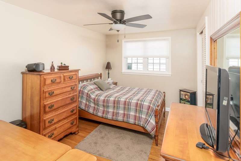 Over 1400 sq ft of main floor living and another 900 sq ft in the finished lower level. This quality-built ranch offers exceptional square footage and a prime location. The living and dining rooms impress with vaulted beamed ceilings, a gas log fireplace, and a wall of windows trimmed in crisp white, showcasing views of the private lot. The main floor features a spacious primary suite, select hardwood floors, and a fully applianced kitchen with sunny eating nook, plus laundry on both levels. The walkout basement adds a family room, half bath, screened porch with brand new roof, large workshop, and abundant storage. An oversized 2.5-car garage with newly finished Nature Stone flooring completes this outstanding home.