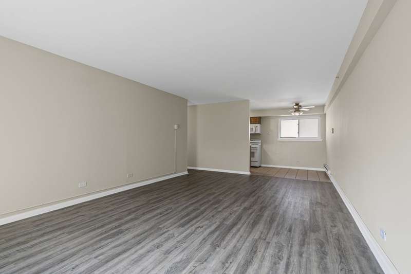 Charming End-Unit Condo in Prime Mount Prospect Location! Discover the perfect opportunity to own your home-or invest and rent it out! This desirable private end unit offers an updated bright, spacious layout with a comfortable living area featuring gorgeous wood laminate flooring that flows seamlessly into a generous dining space and galley kitchen. The primary bedroom features ample room and excellent closet space, wood laminate flooring, while the large windows bring in plenty of natural light. Outside, you'll enjoy a beautifully maintained community featuring lush green views and a huge courtyard-perfect for relaxing, entertaining or spending time with your pet complete with convenient dog bag stations for pet owners. Stroll along paths lined with gorgeous seasonal flowers and mature shade trees, or relax by the serene pond with graceful fountains. Multiple benches provide peaceful spots to take in the view. Residents also enjoy exclusive access to a heated outdoor pool and a welcoming clubhouse-perfect for gatherings and social events. Located in an ideal spot close to parks, shopping, and expressways, this home offers both convenience and comfort. Don't miss your chance to make this versatile condo yours!