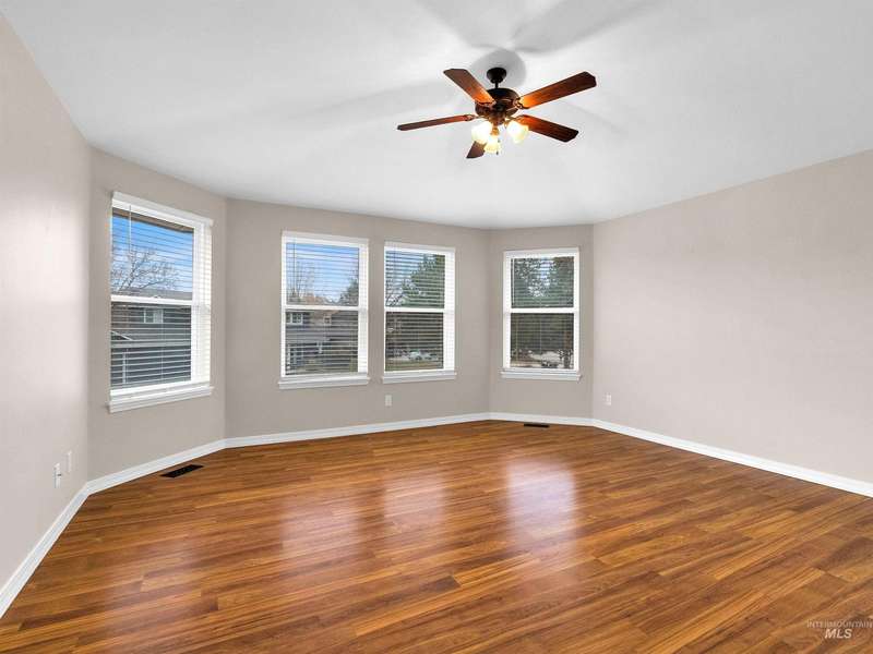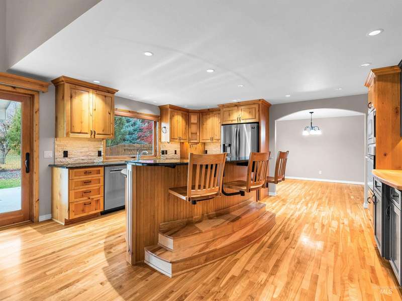 Located in one of Boise’s most established and picturesque communities, this classic two-story home offers timeless comfort and an inviting lifestyle. The bright, open kitchen is the true heart of the home, featuring a spacious island with built-in seating, granite countertops, and gas range. A charming window above the sink looks out to the peaceful backyard, adding warmth and natural light. A main-level bedroom paired with a full bathroom provides excellent privacy and versatility for guests or family. Step outside to the private stamped-concrete patio—ideal for outdoor dining, BBQs, or relaxing under mature trees. With open fencing backing to community green space, the oversized lot feels even larger and more connected to nature. A three-car garage with added storage features offers ample space for hobbies, gear, or tools. Roof is only 5 years old, for worry-free years to come. This home is nestled in a storybook-like neighborhood filled with large trees, walking paths, parks, and open spaces, all near highly rated schools, making it perfect for those seeking charm, convenience, and an established setting.