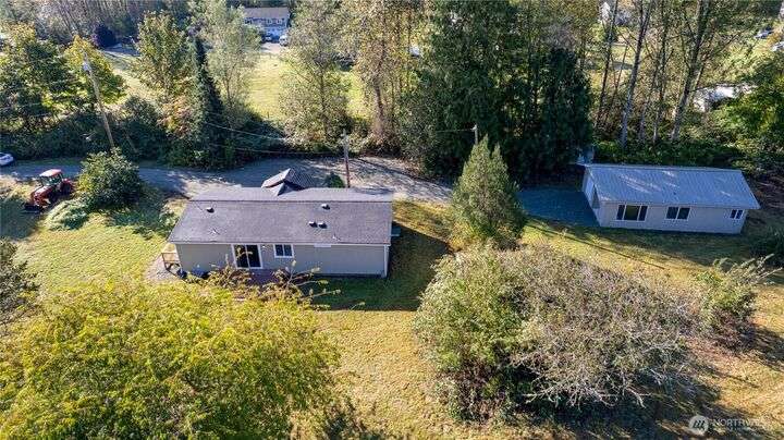 Escape to your own retreat in Gold Bar! This 2021-built 2BD/2BA, 1,296 sq ft manufactured home sits on a reinforced slab foundation across 3.21 flat, serene acres surrounded by stunning mountain views. Enjoy a bright, open layout with a modern kitchen featuring new appliances, and plenty of storage. The spacious primary suite offers comfort and privacy, plus an extra room that can serve as a 3rd bedroom or office. The expansive lot provides opportunities for gardening, recreation, or simply soaking in the scenery. A huge, fully finished detached garage/shop adds incredible versatility for hobbies, storage, or workspace. With an updated well and move-in ready condition, this property is perfect for those seeking both views and function.