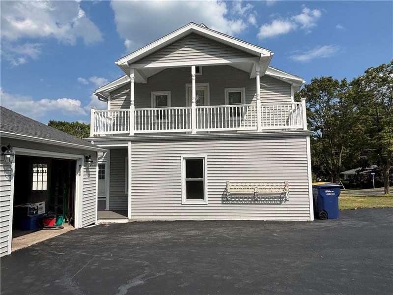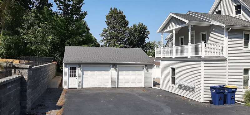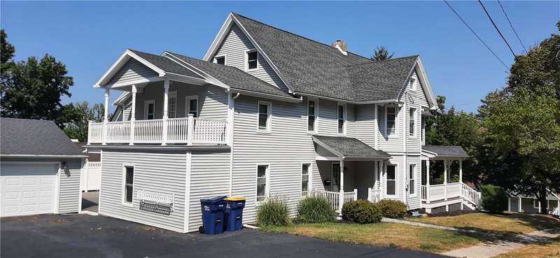 Welcome to 26 Pleasant Street in the Village of Clifton Springs! This beautifully renovated Victorian (2013) features a Craftsman-style kitchen with soft-close doors and drawers, open wood shelving, quartz countertops, and a breakfast bar that opens to the family room with a free-standing gas fireplace. All stainless steel appliances are included, including a 5-burner gas stove.There are two full baths upstairs?one with a skylight?and a half bath on the main floor, updated during the renovation. A second free-standing gas fireplace is located in the upstairs foyer. The home offers both front and back staircases; the front features stunning original woodwork and a closet under the stairs, while the back staircase leads to the family room.Original hardwood floors and woodwork remain throughout, including three pocket doors. Major updates in 2013 include electric, furnace, hot water tank, air conditioning, and air purifier. Exterior improvements include siding, deck, front porch, balcony, most windows, and exterior doors.The property also features a two-car garage with a unique retaining wall and an extra lot. Inside, you'll find a formal dining room, library, 4?5 bedrooms (including an office or optional 5th bedroom), and a walk-up attic. PLEASE REMOVE SHOES AND CARRY TO BASEMENT.