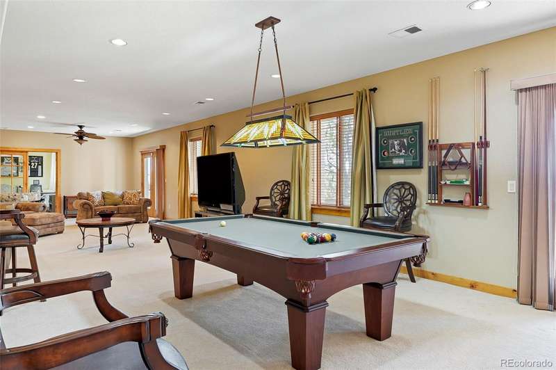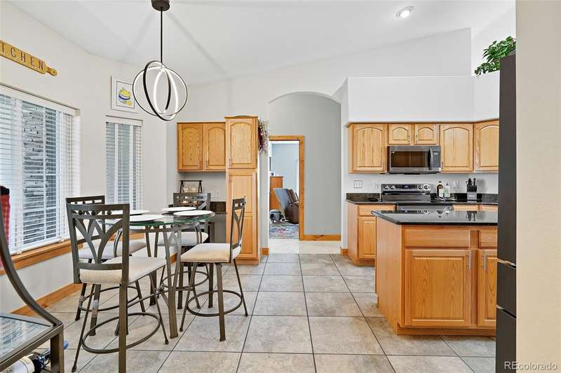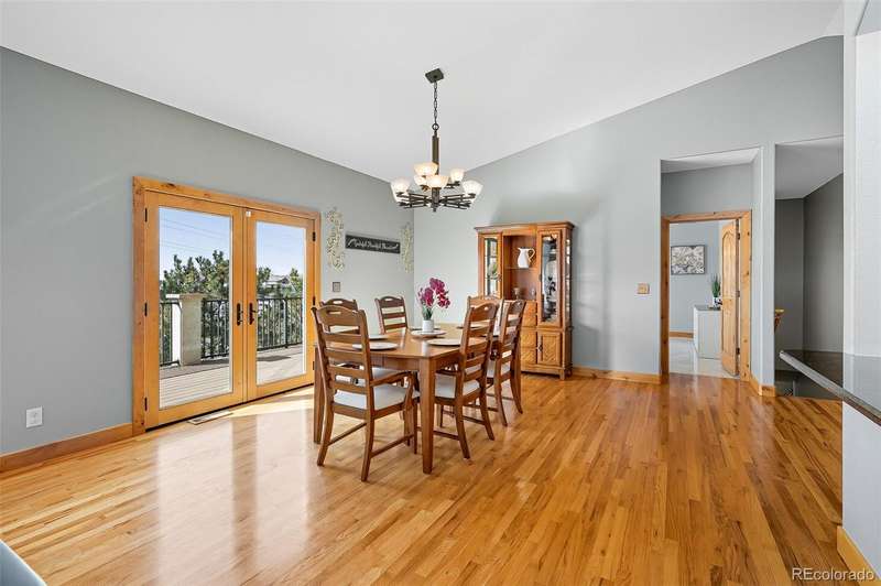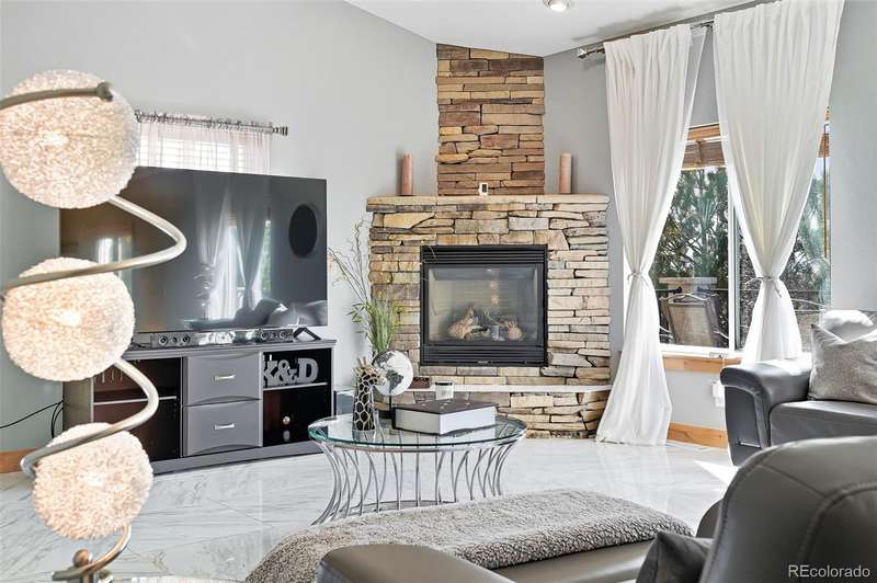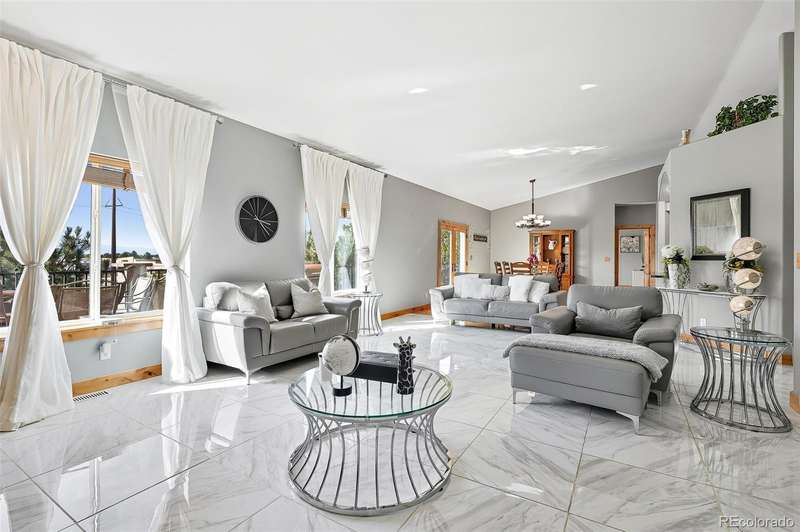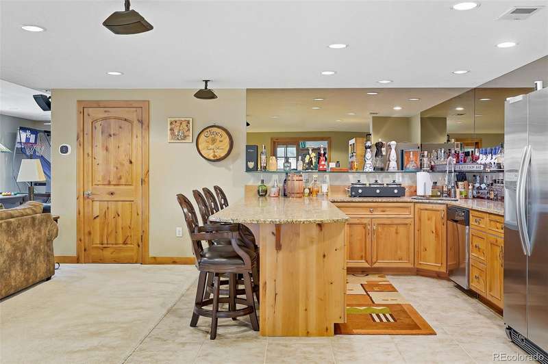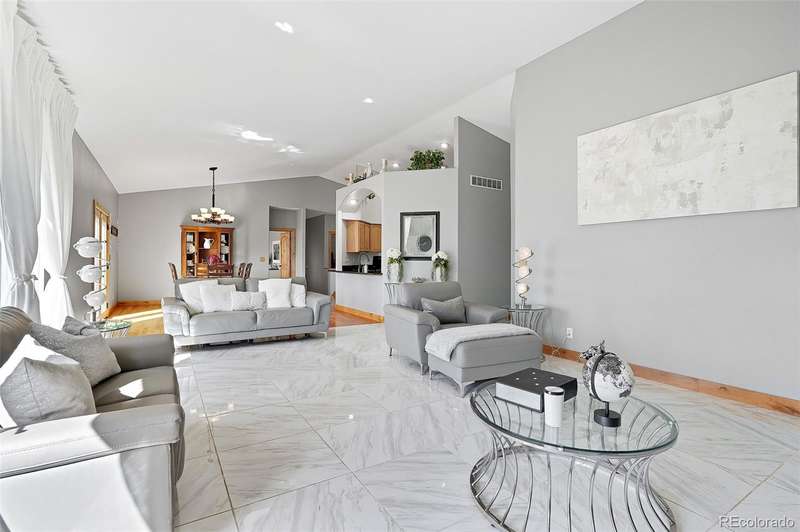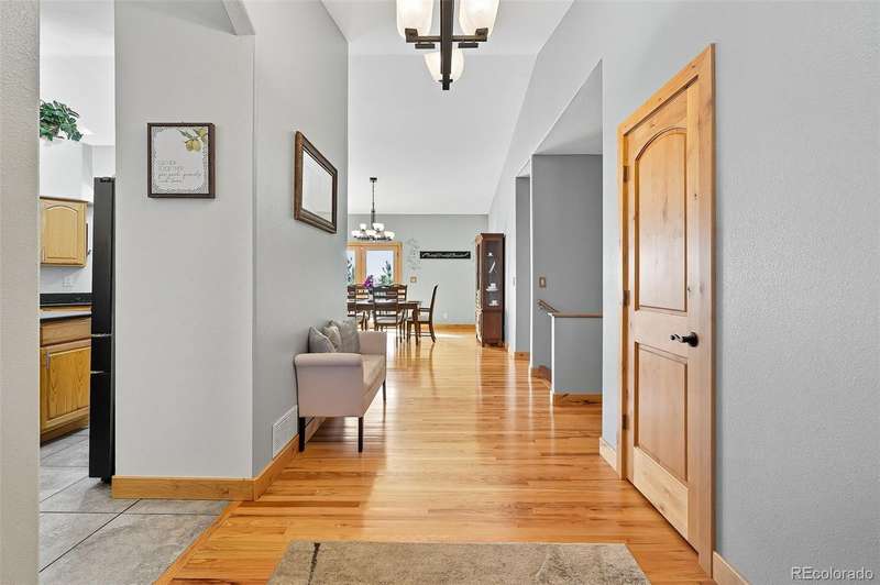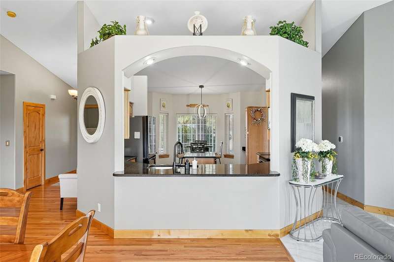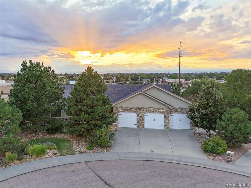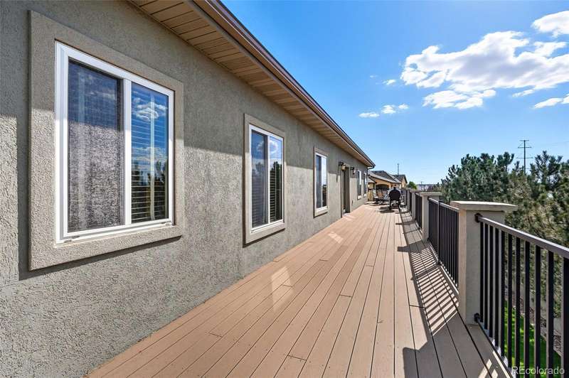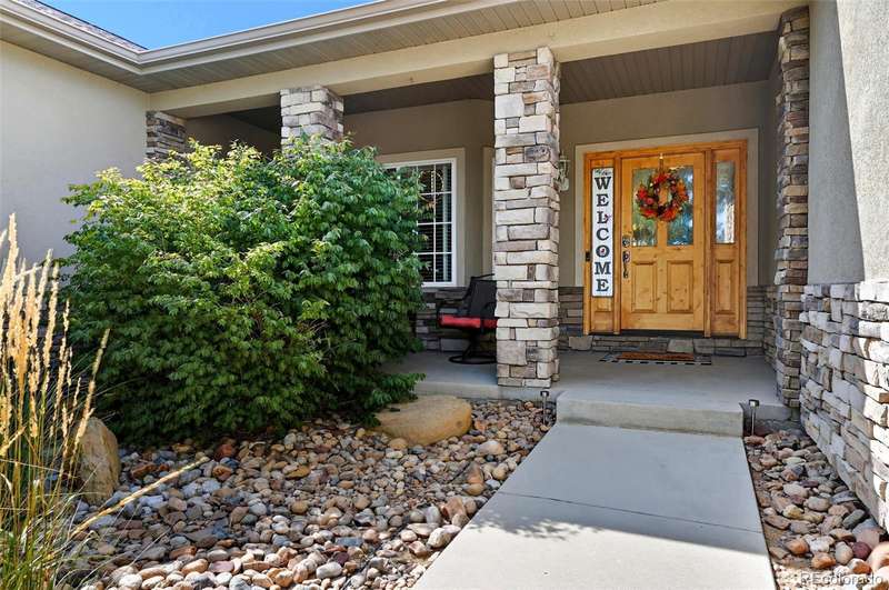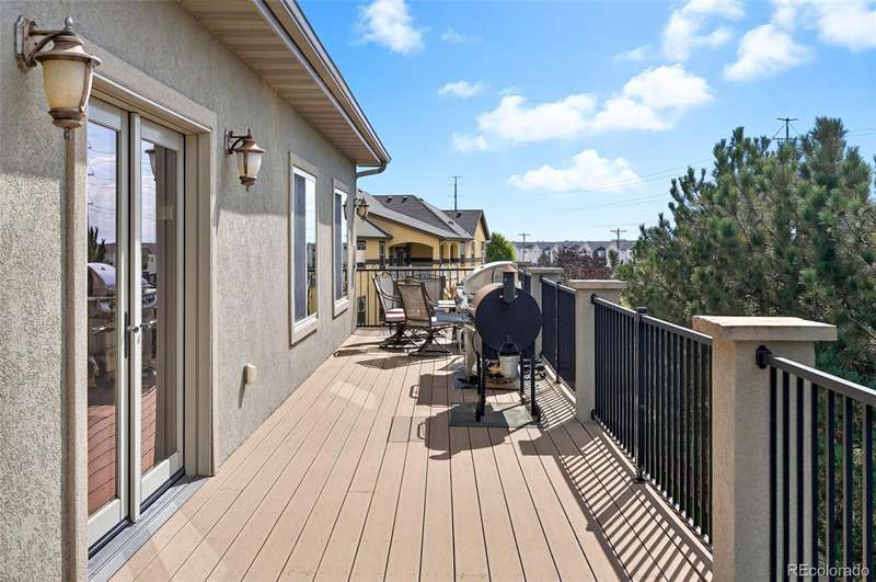Wrapped in mature, thoughtfully designed landscaping unmatched in Fort Lupton, this property feels like a private retreat. Towering trees provide year-round color and privacy, while a grandfathered retaining wall lifts the lot six feet above its neighbors. Behind it, mature evergreens form a lush backdrop and the expansive yard features professionally maintained turf. The result is a setting with sweeping mountain views and a sense of seclusion rarely found in town. Inside, an open floor plan with high ceilings and custom oak doors accented by rich wood trim highlights quality craftsmanship. The kitchen was recently painted and updated with new appliances in the past year. The light-filled living room leads to a huge deck, perfect for taking in mountain views and sunsets. The large main-level primary suite offers plenty of space for a king size bed, a five-piece bath with a soaking tub and dual vanities, plus a large walk-in closet with a fully custom Container Store design. Two additional generous sized bedrooms and baths provide space for guests, kids, or a home office. The laundry/mud room connects to the oversized three-car garage with the option for electric car charging. The walkout basement includes a second kitchen with granite bar, refrigerator, sink, and dishwasher, plus generous recreation space, two more bedrooms, and a full bath-ideal for an in-law suite. The basement opens to a covered patio and yard designed for entertaining or play. Two furnaces, two AC units, and two water heaters ensure year-round comfort. Recent updates include a new roof with upgraded shingles, three new garage doors, new gutters with discreet under-mount drainage, and a one-year-old washer and dryer. This is a rare opportunity to own a home where extraordinary landscaping meets panoramic mountain views.