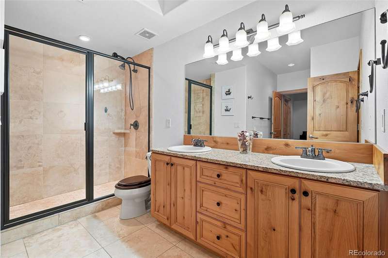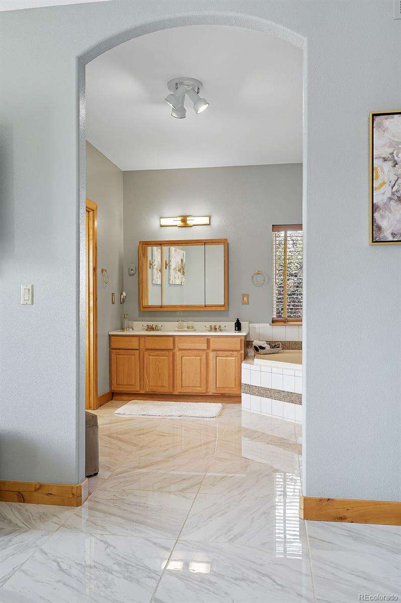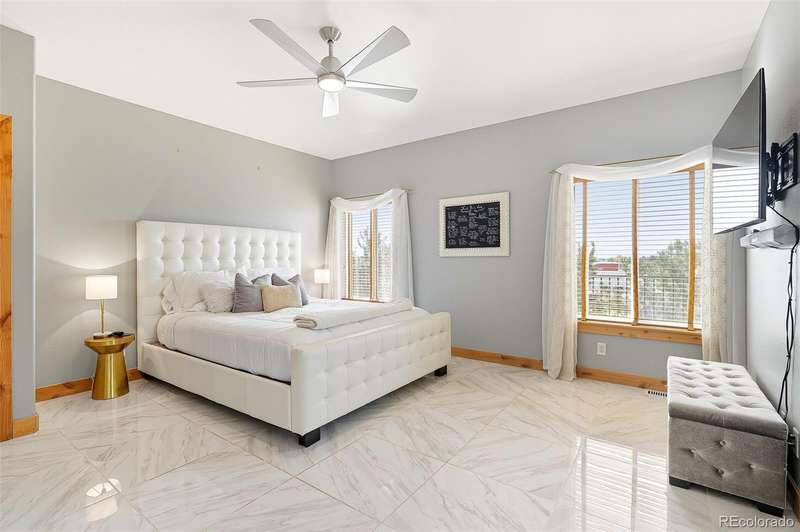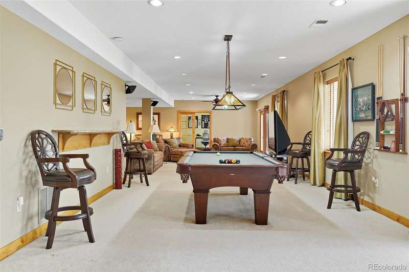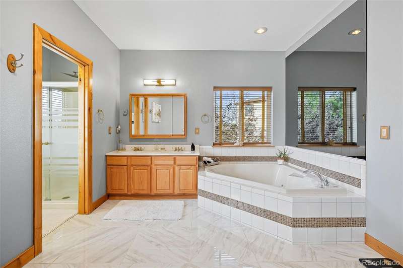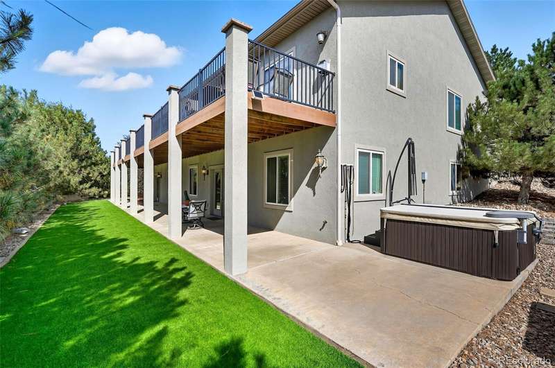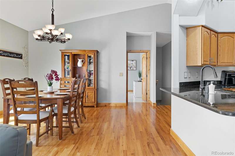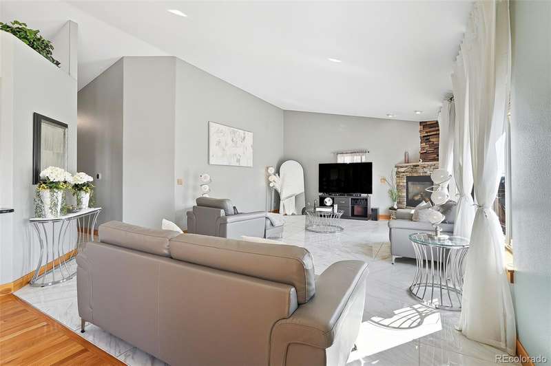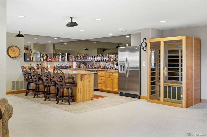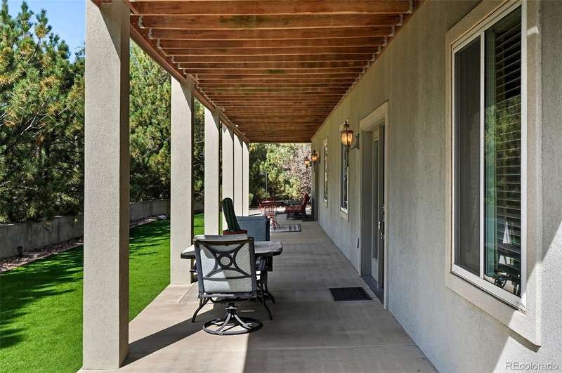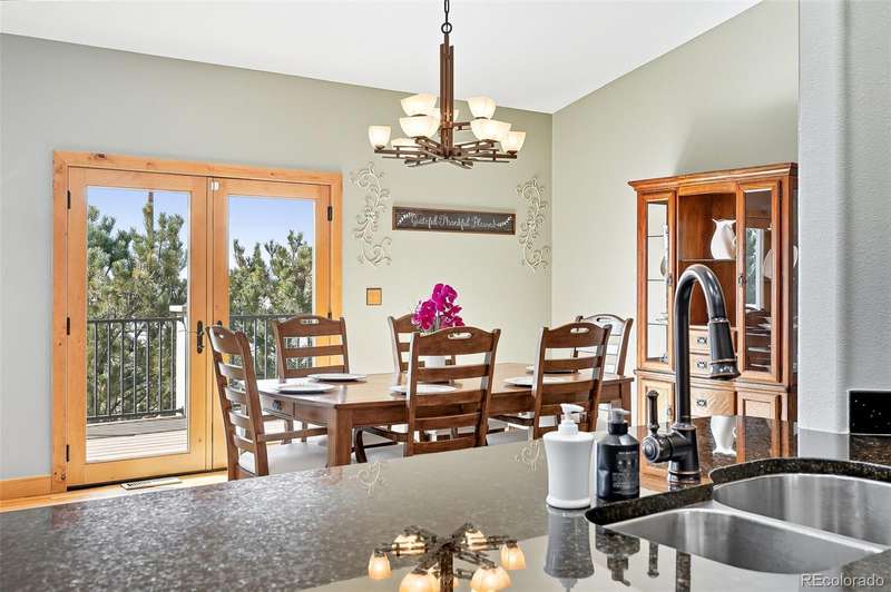 Wrapped in mature, thoughtfully designed landscaping unmatched in Fort Lupton, this property feels like a private retreat. Towering trees provide year-round color and privacy, while a grandfathered retaining wall lifts the lot six feet above its neighbors. Behind it, mature evergreens form a lush backdrop and the expansive yard features professionally maintained turf. The result is a setting with sweeping mountain views and a sense of seclusion rarely found in town. Inside, an open floor plan with high ceilings and custom oak doors accented by rich wood trim highlights quality craftsmanship. The kitchen was recently painted and updated with new appliances in the past year. The light-filled living room leads to a huge deck, perfect for taking in mountain views and sunsets. The large main-level primary suite offers plenty of space for a king size bed, a five-piece bath with a soaking tub and dual vanities, plus a large walk-in closet with a fully custom Container Store design. Two additional generous sized bedrooms and baths provide space for guests, kids, or a home office. The laundry/mud room connects to the oversized three-car garage with the option for electric car charging. The walkout basement includes a second kitchen with granite bar, refrigerator, sink, and dishwasher, plus generous recreation space, two more bedrooms, and a full bath-ideal for an in-law suite. The basement opens to a covered patio and yard designed for entertaining or play. Two furnaces, two AC units, and two water heaters ensure year-round comfort. Recent updates include a new roof with upgraded shingles, three new garage doors, new gutters with discreet under-mount drainage, and a one-year-old washer and dryer. This is a rare opportunity to own a home where extraordinary landscaping meets panoramic mountain views.