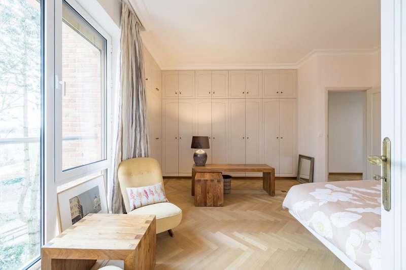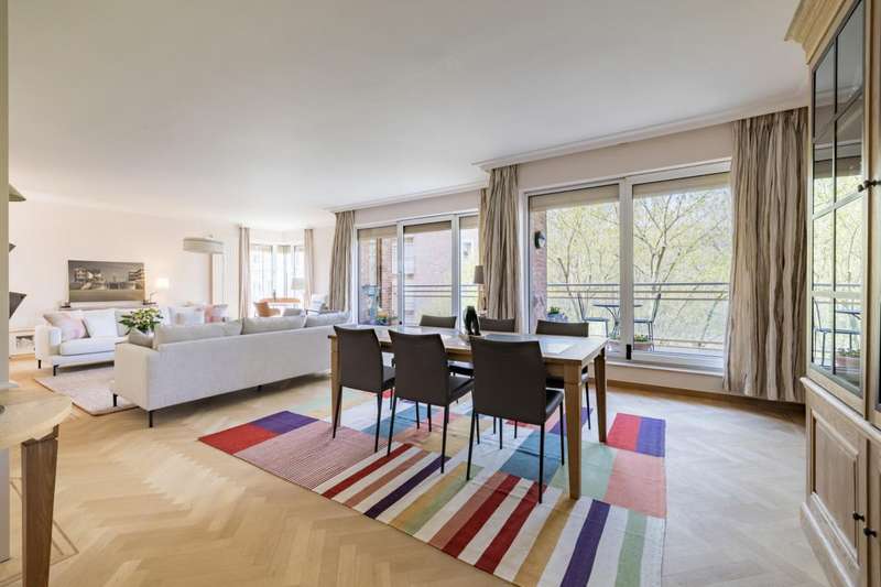 In a quiet and wooded residential enclosure, in the immediate vicinity of the Bois de la Cambre, this elegant Apartment of ± 204 m² benefits from a triple exposure and exceptional light. Located on the 2nd floor of a luxury residence built in 1991, it was completely renovated in 2024 with quality materials. It offers beautiful reception rooms, a super equipped kitchen, three bedrooms, two bathrooms and an additional shower room. A pleasant terrace completes the ensemble. Obligatory extra: a double garage box with adjoining cellar, at a price of €40,000. EPC D