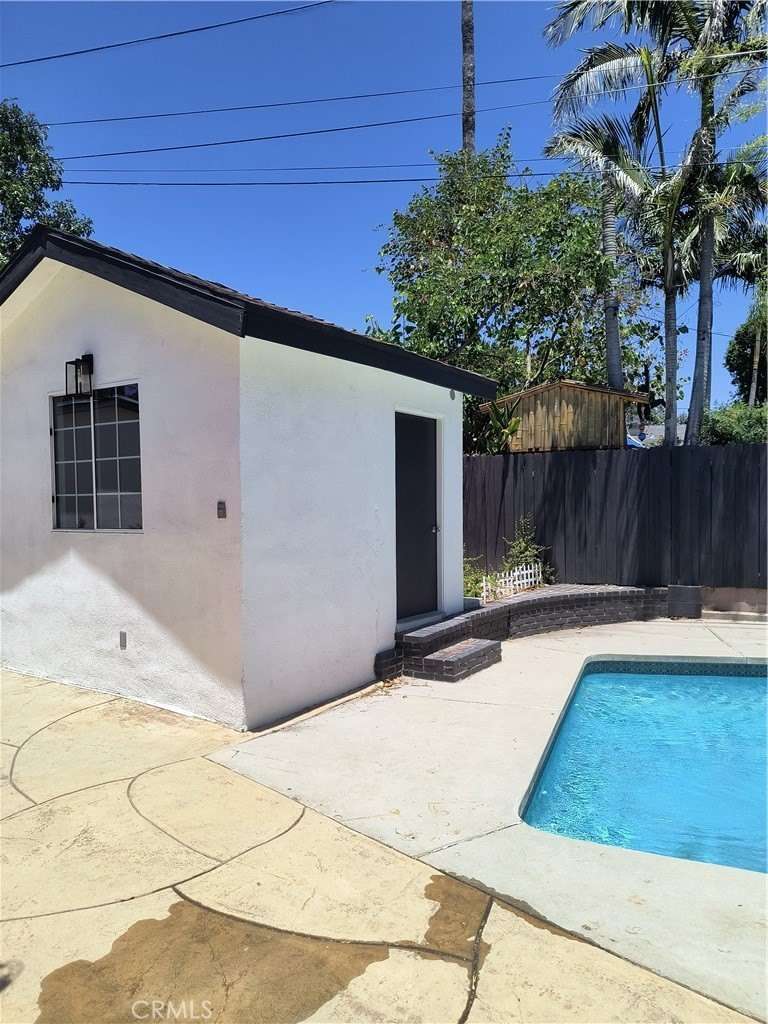 Welcome to this beautifully maintained turnkey 3-bedroom, 2-bath home featuring a bonus converted garage private guest suite complete with its own kitchenette and bathroom. Perfect for extended family, guests, or rental potential! Step inside to find a spacious, light-filled layout with modern finishes and comfortable living spaces. The open kitchen and dining area make entertaining a breeze, while the primary suite offers a serene retreat. Out back, enjoy a large, private backyard paradise boasting a sparkling pool, a cozy pool house, and plenty of space for gatherings or quiet relaxation. Whether you're hosting summer parties or just soaking up the sun, this backyard has it all. Don’t miss this versatile and inviting property—it’s more than a home, it’s a lifestyle! Ask ChatGPT