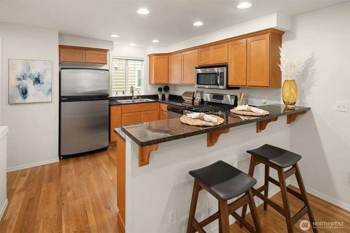 Charming One-Owner Townhome in Pinehurst! Minutes from the new light rail station, shopping, and amenities—yet tucked away on a quiet residential street. Enjoy natural light from desirable east/west exposure and views of greenery from the east-facing windows. Inside, you'll find real hardwood floors in excellent condition, brand new carpet, and fresh paint throughout walls and ceilings. The private, gated outdoor space is perfect for relaxing or a pet retreat. With a spacious garage and additional street parking, low-maintenance living has never been so easy. No HOA. Come see why this is the one you've been waiting for!