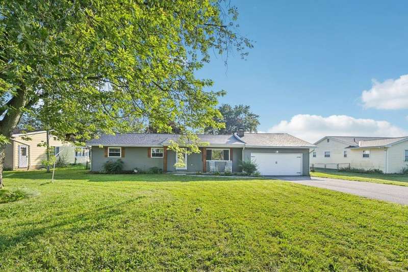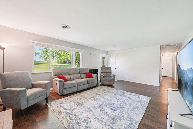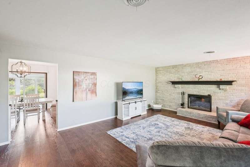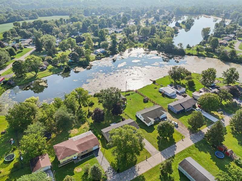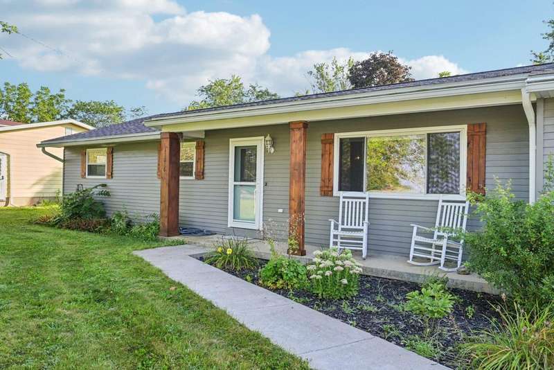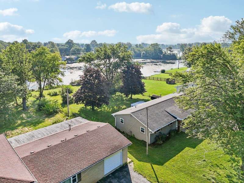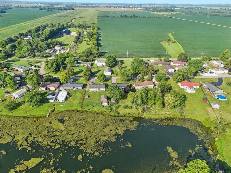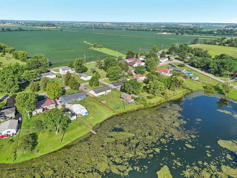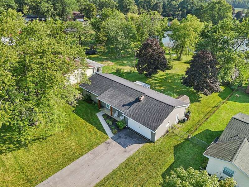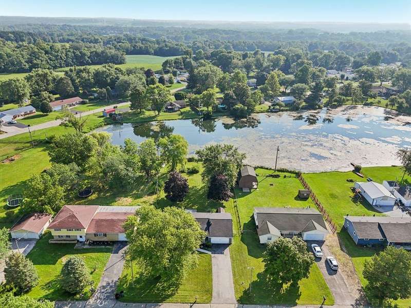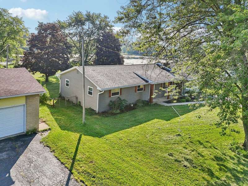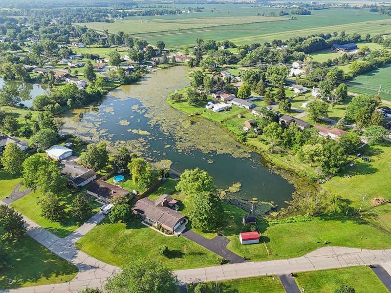 Stunning waterfront home in Clarks Lake. Large lot, over a half-acre with a backyard 3 seasons room to enjoy the view! Laminate flooring throughout, modern, updated lighting and a remodeled kitchen with newer appliances (2022). Remote start fireplace. Roof and hot water tank replaced. (2022). Extra garage storage and generous closets throughout. This great open living space is all on one floor. Owner bedroom with private bathroom. This beauty will not last. Minutes from I-71, easy commute to downtown.