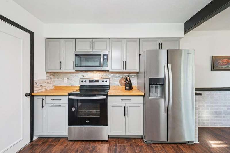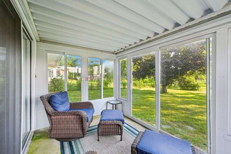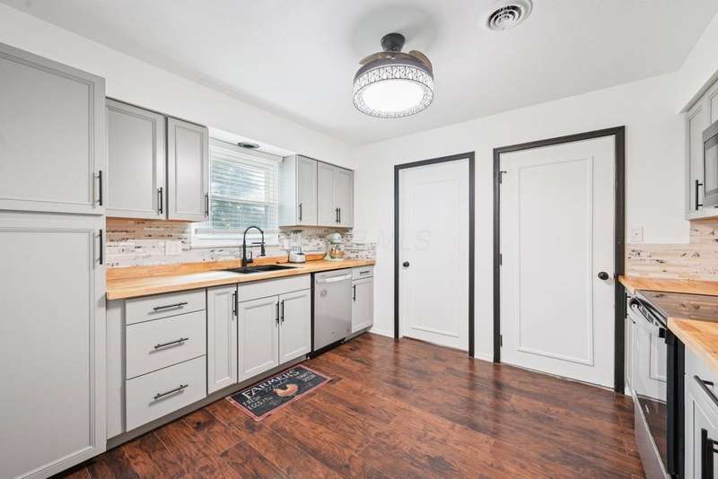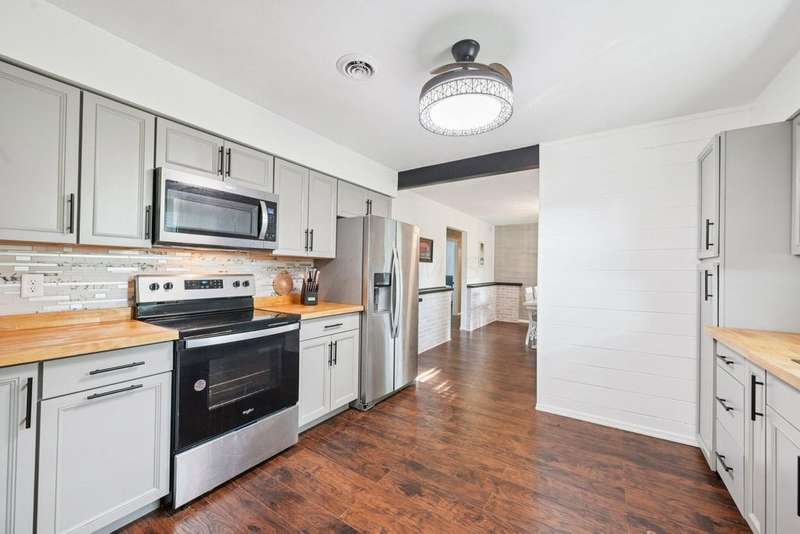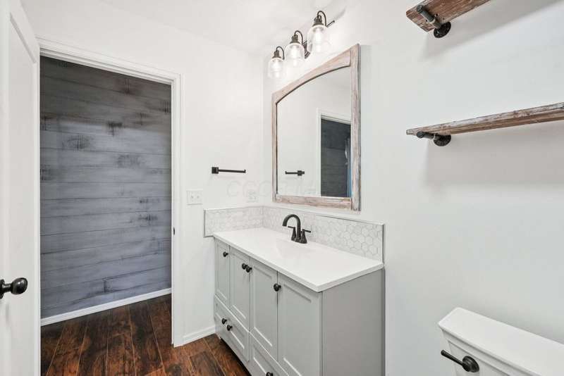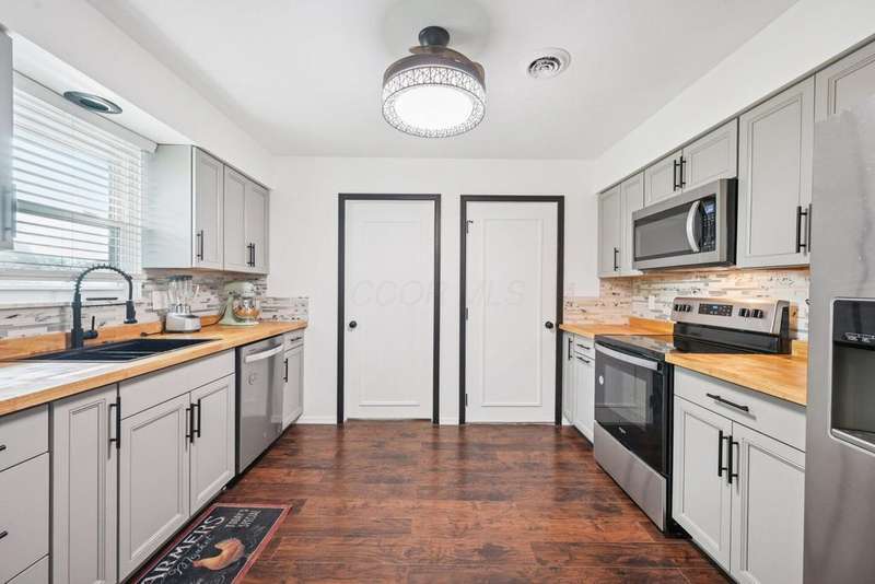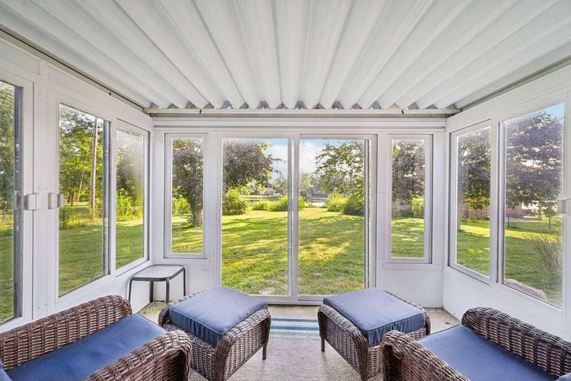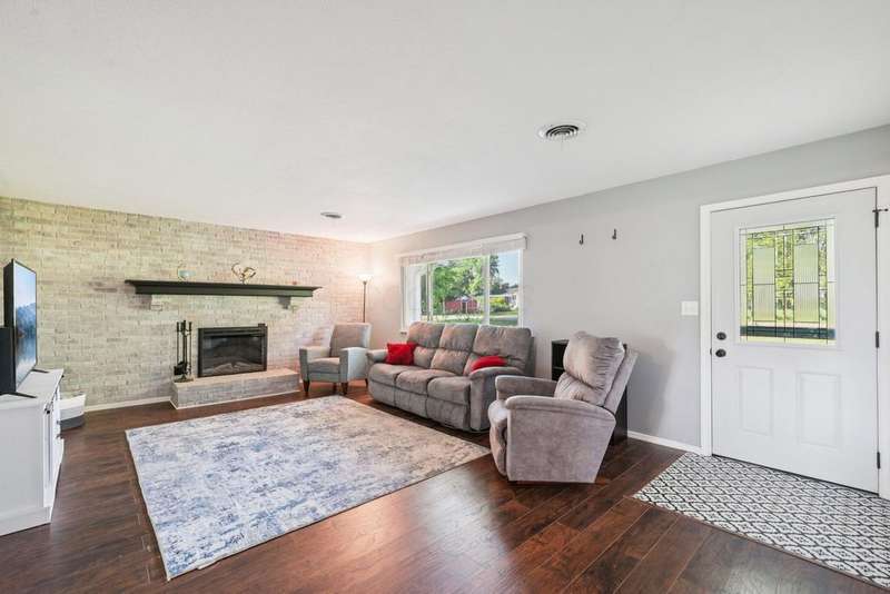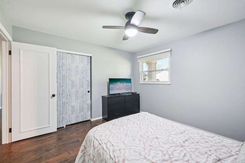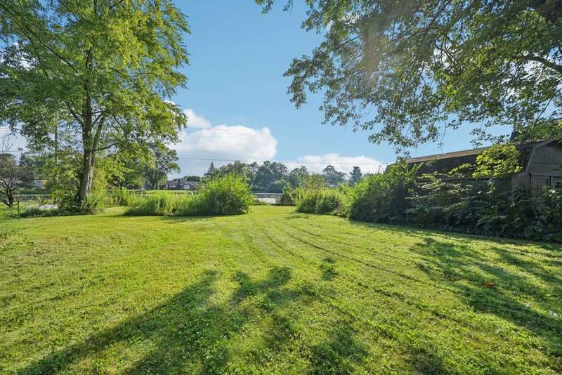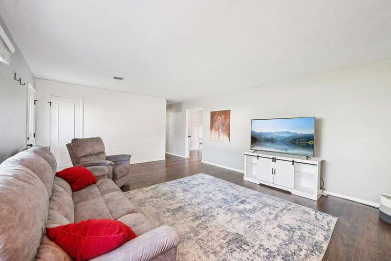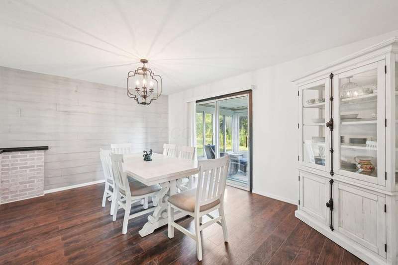 Stunning waterfront home in Clarks Lake. Large lot, over a half-acre with a backyard 3 seasons room to enjoy the view! Laminate flooring throughout, modern, updated lighting and a remodeled kitchen with newer appliances (2022). Remote start fireplace. Roof and hot water tank replaced. (2022). Extra garage storage and generous closets throughout. This great open living space is all on one floor. Owner bedroom with private bathroom. This beauty will not last. Minutes from I-71, easy commute to downtown.